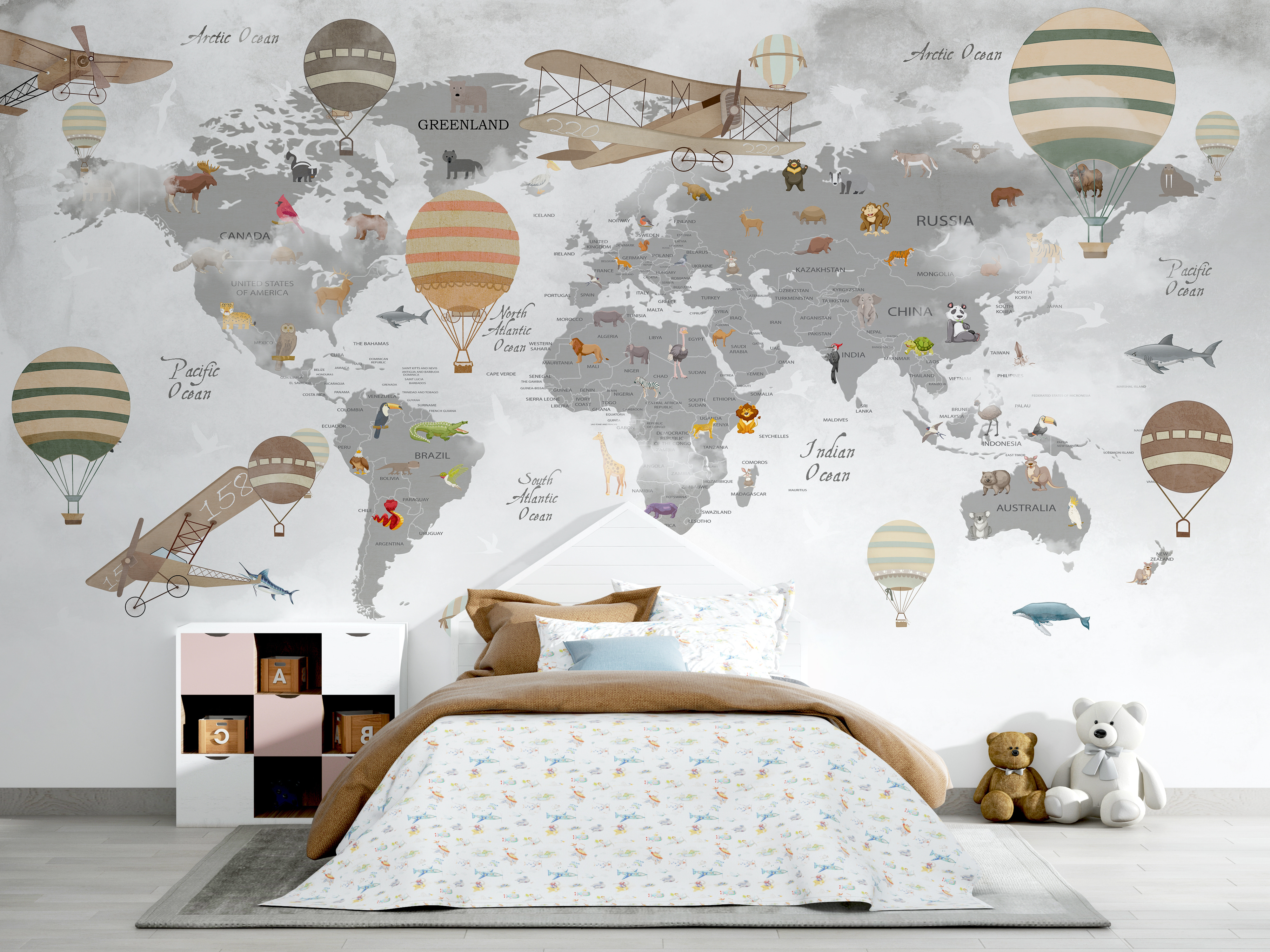 Φανταστείτε αυτό – ο μικρός σας τυχοδιώκτης ξυπνάει σε ένα δωμάτιο γεμάτο από ευφάνταστα αερόστατα που αιωρούνται πάνω από έναν παλιό χάρτη! Το “Αερόστατο θερμού αέρα με έναν καρχαρία στο φόντο” είναι μια ιδιόρρυθμη, μαγευτική τοιχογραφία που είναι ιδανική για να κεντρίσει την περιέργεια. Δεν έχει να κάνει μόνο με τη γεωγραφία- είναι σαν μια ιστορία που περιμένει να ξεδιπλωθεί. Φανταστείτε παραμύθια για το κρεβάτι που ταξιδεύουν στον κόσμο, συναντούν ζώα και ρίχνουν κρυφά μια ματιά σε αυτόν τον θρασύ καρχαρία. Ιδανικό για παιδιά που ονειρεύονται μεγάλα, μετατρέπει κάθε χώρο σε παιχνιδιάρικο ορμητήριο για τη φαντασία. Είναι διασκεδαστικό, εκπαιδευτικό και με μια πινελιά vintage γοητείας, όλα μαζί σε ένα υπέροχο ντεκόρ τοίχου!