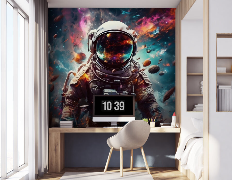 Φανταστείτε να έχετε ένα κομμάτι του διαστήματος στο σαλόνι σας – ή ακόμα καλύτερα, στο δωμάτιο του παιδιού σας! Αυτή η τοιχογραφία ενός αστροναύτη που επιπλέει ανάμεσα σε κοσμικά συντρίμμια είναι απλά μαγευτική. Δεν είναι απλώς μια διακόσμηση, είναι μια περιπέτεια που περιμένει να συμβεί. Φανταστείτε τον μικρό σας αστροναύτη να κοιτάζει τα ζωντανά χρώματα και τους στροβιλιζόμενους γαλαξίες, με τα μάτια ορθάνοιχτα από θαυμασμό. Είναι σαν να μεταφέρεστε σε έναν άλλο κόσμο, γεμάτο μυστήριο και ενθουσιασμό! Ιδανικό για ονειροπόλους όλων των ηλικιών, θα πυροδοτήσει τη φαντασία και ίσως και μερικά γέλια για το τι είδους διαστημικά σκουπίδια περιφέρονται εκεί πάνω. Σίγουρα έναυσμα για συζήτηση και μια ονειρική απόδραση για κάθε δωμάτιο που χρειάζεται μια κοσμική πινελιά.
