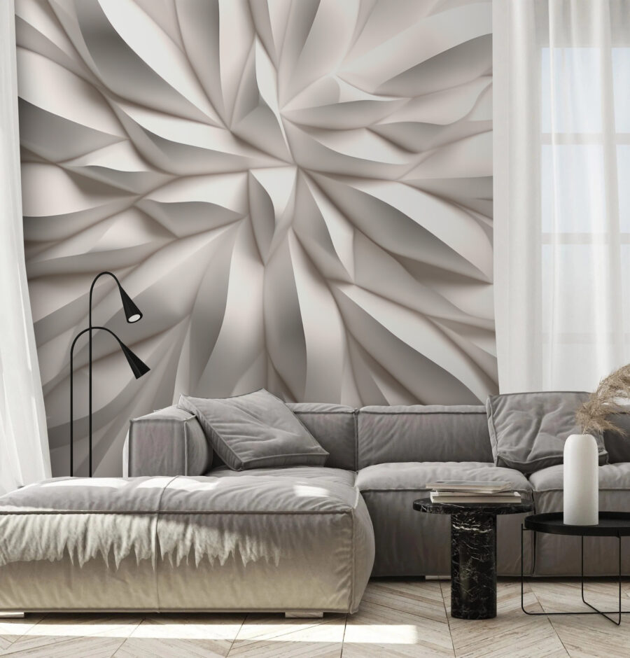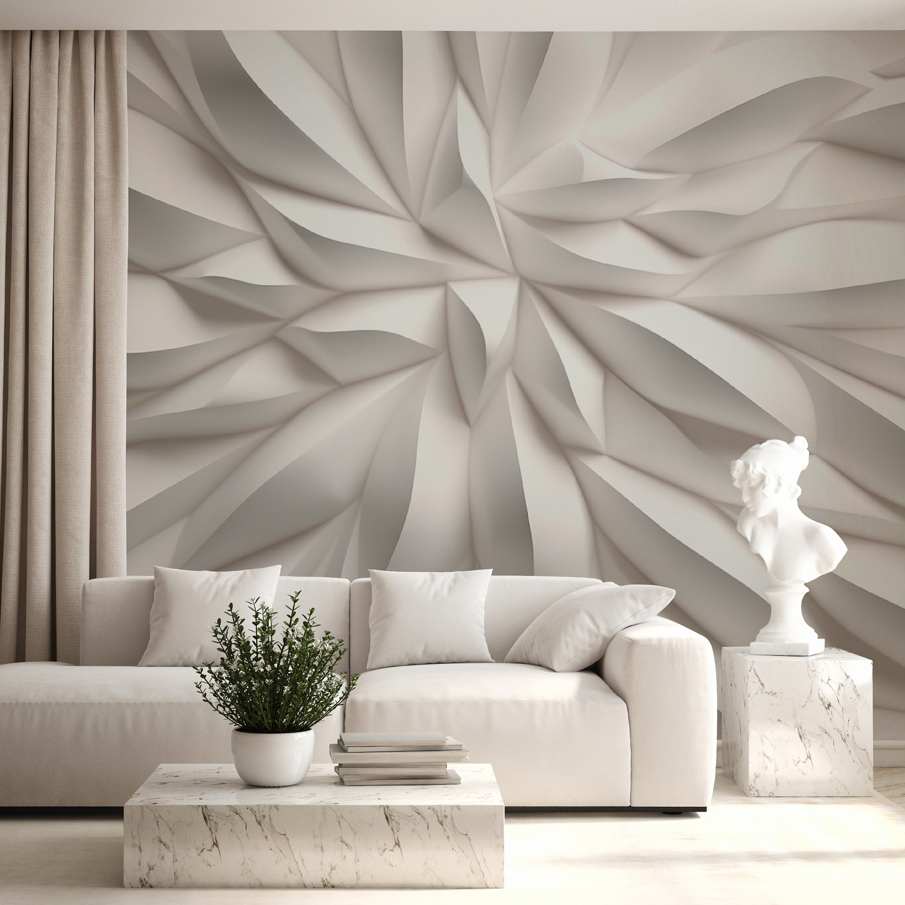 Οι λεπτές λευκές πτυχώσεις δημιουργούν ένα δυναμικό τρισδιάστατο εφέ που είναι ταυτόχρονα μοντέρνο και ηρεμιστικό. Ειλικρινά, μοιάζει σχεδόν με ένα γιγαντιαίο, περίπλοκο λουλούδι. Ιδανικό για όποιον αγαπά την εκλεπτυσμένη απλότητα με ένα twist. Τοποθετήστε το στο σαλόνι, το υπνοδωμάτιο ή ακόμα και στο χώρο εργασίας σας – άμεση αναβάθμιση! Επιπλέον, ανήκει στην κατηγορία Flower Ταπετσαρίες 3D, οπότε ξέρετε ότι έχει αυτή τη φυσική, οργανική ατμόσφαιρα. Βυθιστείτε σε μια περιπέτεια σχεδιασμού με αυτή τη μοναδική τοιχογραφία – δεν θέλετε να την αγγίξετε;