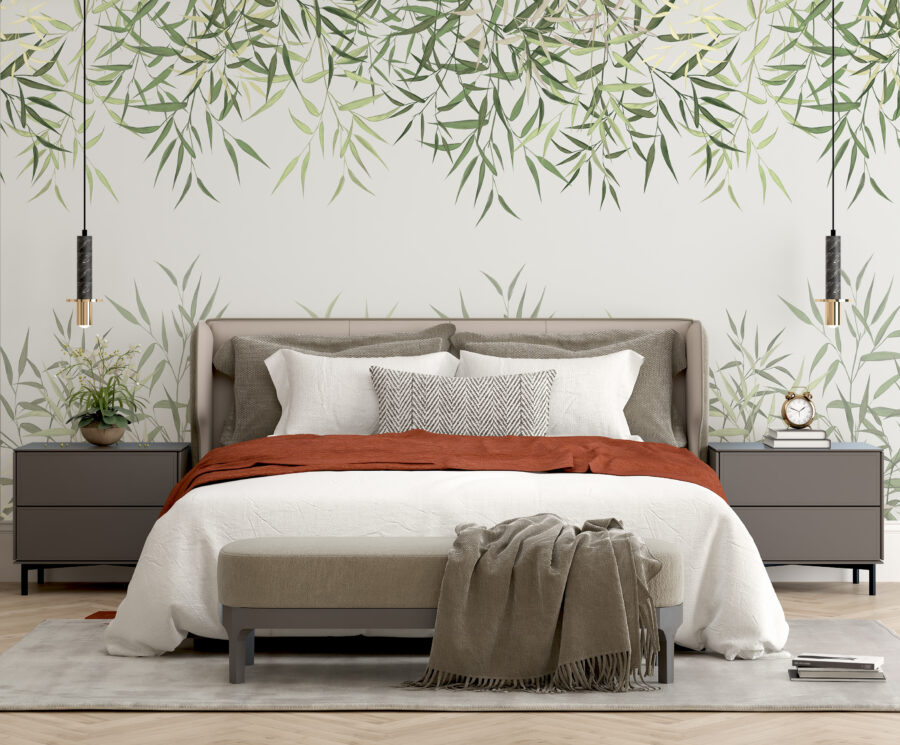 Μεταμορφώστε το χώρο σας με αυτή τη μαγευτική τοιχογραφία, όπου τα φύλλα δημιουργούν ένα εντυπωσιακό φυσικό περίγραμμα. Φανταστείτε να μπαίνετε σε μια γαλήνια όαση κάθε φορά που μπαίνετε στο δωμάτιο – αυτά τα απαλά πράσινα έχουν τον τρόπο να ηρεμούν ακόμα και τα πιο πολυάσχολα μυαλά. Είτε πρόκειται για ένα άνετο σαλόνι είτε για μια χαρούμενη κουζίνα, αυτή η τοιχογραφία προσθέτει μια πινελιά φύσης χωρίς να χρειάζεται να έχετε πράσινο αντίχειρα. Και ας είμαστε ειλικρινείς, ποιος δεν λατρεύει την ιδέα να έχει τους τοίχους του διακοσμημένους με φυλλώδη γοητεία; Είναι σαν να προσκαλείτε ένα μικρό δάσος μέσα στο σπίτι σας -χωρίς ενοχλητικά ζωύφια να βουίζουν τριγύρω. Ιδανικό για όσους αγαπούν την αναζωογονητική ατμόσφαιρα, αυτό το σχέδιο είναι βέβαιο ότι θα φωτίσει τους τοίχους και τα πνεύματα.
