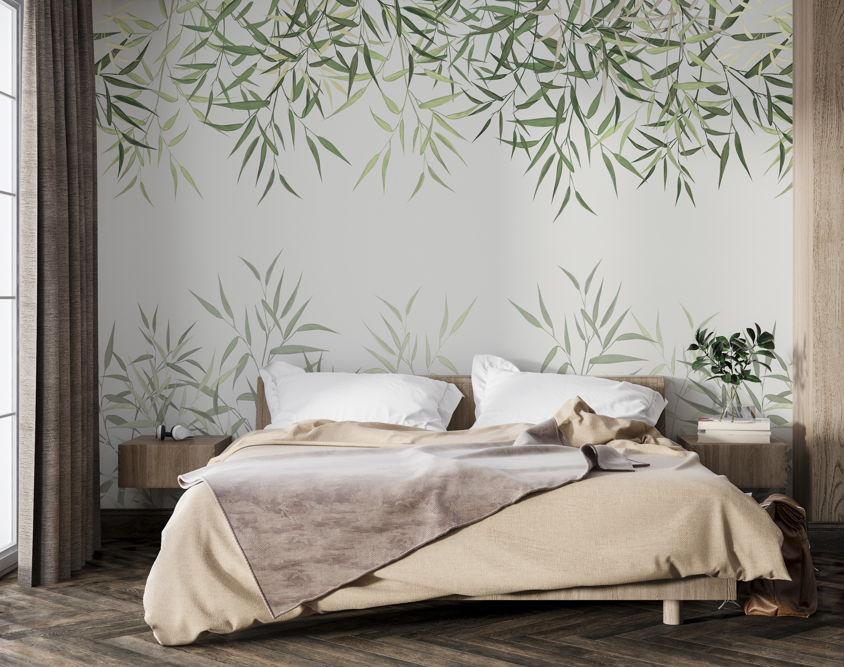 Μεταμορφώστε το χώρο σας με αυτή τη μαγευτική τοιχογραφία, όπου τα φύλλα δημιουργούν ένα εντυπωσιακό φυσικό περίγραμμα. Φανταστείτε να μπαίνετε σε μια γαλήνια όαση κάθε φορά που μπαίνετε στο δωμάτιο – αυτά τα απαλά πράσινα έχουν τον τρόπο να ηρεμούν ακόμα και τα πιο πολυάσχολα μυαλά. Είτε πρόκειται για ένα άνετο σαλόνι είτε για μια χαρούμενη κουζίνα, αυτή η τοιχογραφία προσθέτει μια πινελιά φύσης χωρίς να χρειάζεται να έχετε πράσινο αντίχειρα. Και ας είμαστε ειλικρινείς, ποιος δεν λατρεύει την ιδέα να έχει τους τοίχους του διακοσμημένους με φυλλώδη γοητεία; Είναι σαν να προσκαλείτε ένα μικρό δάσος μέσα στο σπίτι σας -χωρίς ενοχλητικά ζωύφια να βουίζουν τριγύρω. Ιδανικό για όσους αγαπούν την αναζωογονητική ατμόσφαιρα, αυτό το σχέδιο είναι βέβαιο ότι θα φωτίσει τους τοίχους και τα πνεύματα.