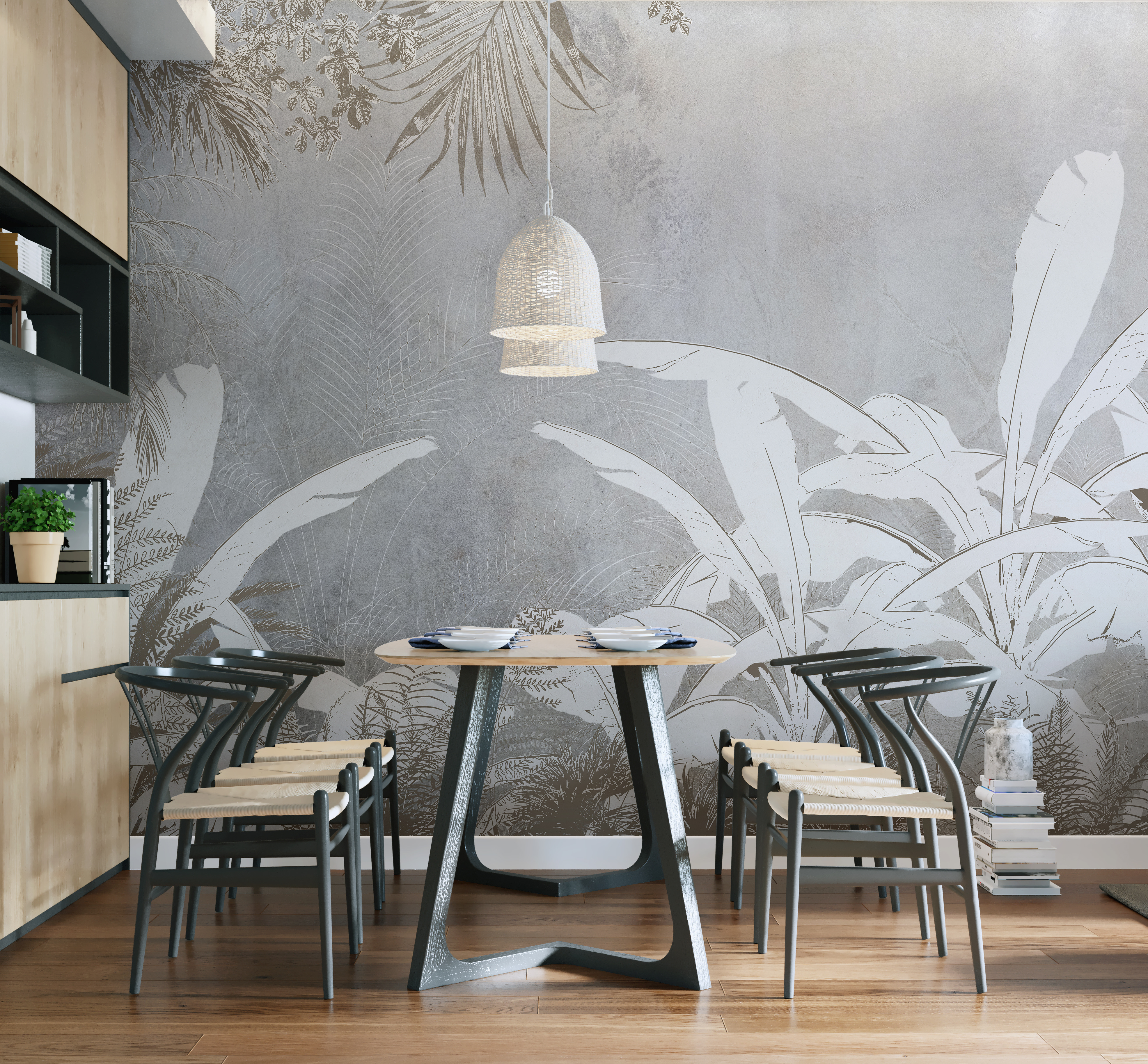 Transform any room into a serene oasis with this stunning white and grey wallpaper mural featuring delicate plants. Imagine waking up to this calming nature scene, a gentle reminder of the great outdoors, minus the bugs. It’s like having a permanent spring day inside your home! Perfect for a child’s room or a cozy nook, this mural invites creativity and exploration. And hey, it could even inspire little ones to become future botanists—who knows? With its soft tones and intricate details, it adds just the right touch of elegance and whimsy. Such a fun way to elevate your space!