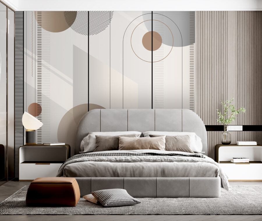 Μεταμορφώστε το χώρο σας με αυτή την εντυπωσιακή τοιχογραφία, με γεωμετρικά μοτίβα σε ζεστούς τόνους που χορεύουν στους τοίχους. Φανταστείτε να μπαίνετε σε ένα δωμάτιο που μοιάζει ταυτόχρονα ζεστό και κομψό, όπου οι καμπύλες και οι γραμμές δημιουργούν έναν ρυθμό που κάνει τα πάντα να μοιάζουν λίγο πιο ζωντανά. Είναι σαν να προσκαλείτε ένα έργο σύγχρονης τέχνης κατευθείαν στο σπίτι σας! Ιδανική για κάθε τοίχο που αισθάνεται λίγο μοναχικός, αυτή η τοιχογραφία μπορεί να εμπνεύσει λίγη δημιουργικότητα ή ίσως ακόμη και ένα διάλειμμα για χορό. Φέρτε μια αίσθηση ζεστασιάς και παιχνιδιάρικη διάθεση στη διακόσμησή σας – οι τοίχοι σας θα σας ευχαριστήσουν!