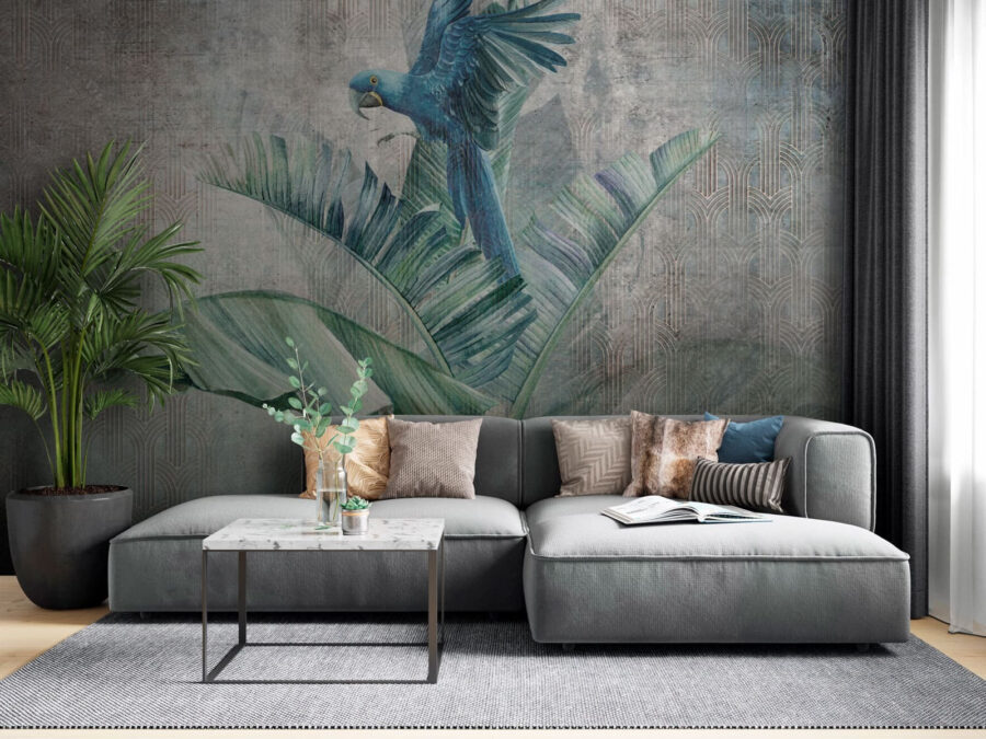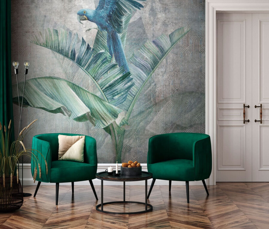 Φανταστείτε να μπαίνετε στο σαλόνι σας και να σας υποδέχεται ένας εντυπωσιακός μπλε παπαγάλος σκαρφαλωμένος σε πλούσια, φυλλώδη κλαδιά. Αυτή η τοιχογραφία τοίχου είναι κάτι περισσότερο από απλή διακόσμηση – είναι μια τροπική απόδραση. Το ζωηρό μπλε του παπαγάλου αναδύεται σε ένα φόντο από καταπραϋντικά πράσινα, κάνοντας το χώρο σας να μοιάζει με όαση τροπικού δάσους. Είναι ιδανική για όποιον αγαπάει τα πουλιά ή απλά χρειάζεται λίγη περισσότερη φύση στη ζωή του. Φανταστείτε το στην τραπεζαρία σας, προσθέτοντας μια φρέσκια ατμόσφαιρα στον πρωινό σας καφέ ή στους καλεσμένους σας για δείπνο, που συμπληρώνει το μοναδικό σας στυλ. Επιπλέον, έχει ακριβώς τη σωστή πινελιά κομψότητας με αυτά τα φύλλα φοίνικα που πλαισιώνουν τη σκηνή. Γιατί να συμβιβαστείτε με απλούς τοίχους όταν μπορείτε να έχετε ένα έργο τέχνης που σας μεταφέρει σε έναν τροπικό παράδεισο κάθε μέρα;