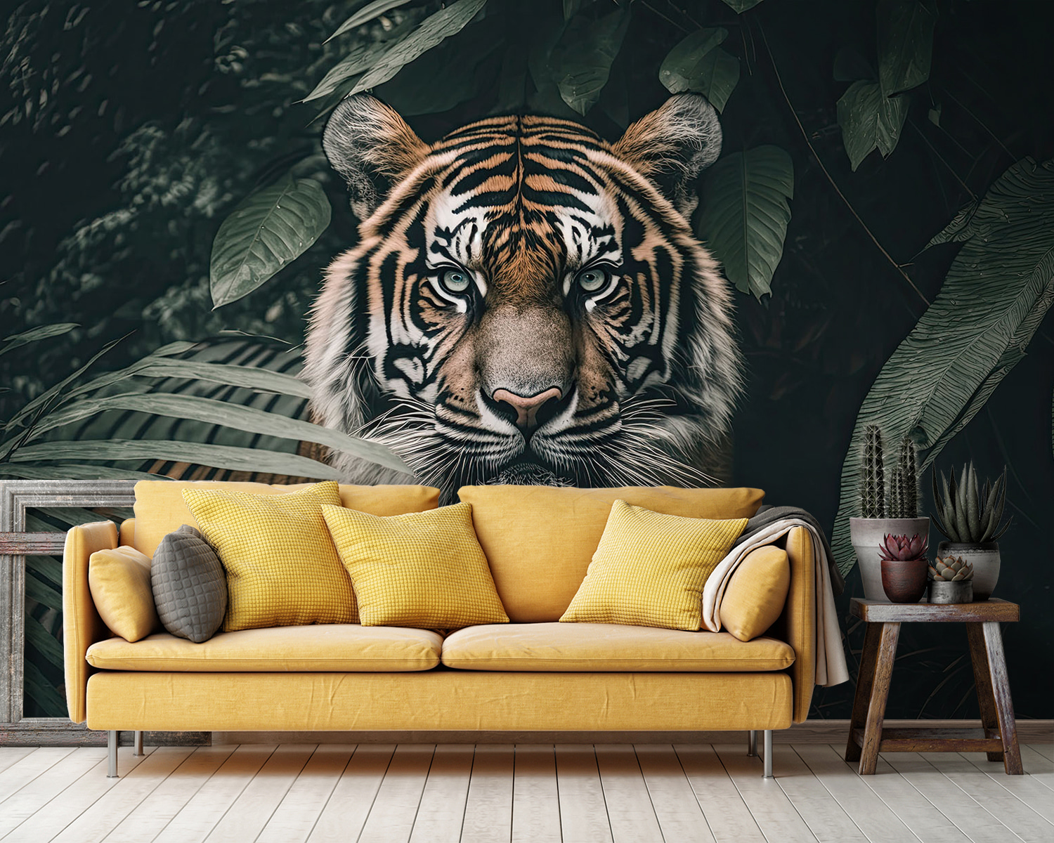 Μεταμορφώστε το χώρο σας με αυτή την εκπληκτική τοιχογραφία με μια τίγρη που ξεπροβάλλει μέσα από τα πλούσια φυλλώματα της ζούγκλας. Είναι σαν μια άγρια περιπέτεια στο σπίτι σας! Φανταστείτε να μπαίνετε σε ένα δωμάτιο όπου αυτό το μεγαλοπρεπές πλάσμα μοιάζει να σας παρακολουθεί, δημιουργώντας μια αίσθηση θαυμασμού και μια μικρή συγκίνηση. Το βαθύ πράσινο και το εντυπωσιακό πορτοκαλί το καθιστούν ιδανικό για κάθε τοίχο – μετατρέποντας έναν καθημερινό χώρο σε μια εξωτική όαση. Φανταστείτε ζεστά βράδια, πίνοντας τσάι, ενώ νιώθετε σαν να έχετε μπει στην αγκαλιά της φύσης. Αυτή η τοιχογραφία δεν διακοσμεί απλώς- αφηγείται μια ιστορία, προσκαλώντας κάθε επισκέπτη να σταματήσει και να την απολαύσει. Ιδανική για όσους αγαπούν να ξεφεύγουν από τα συνηθισμένα!