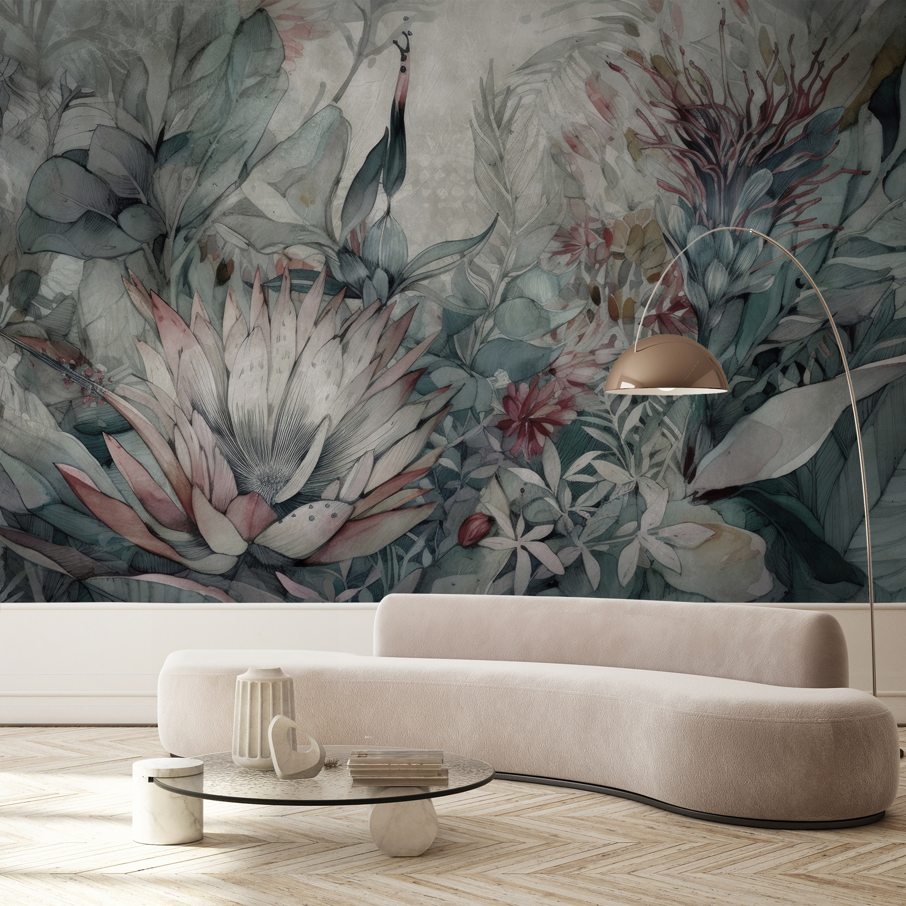Μπείτε σε ένα μαγευτικό όνειρο με την τοιχογραφία “Delicate Floral Illustration”. Ιδανική για όσους αγαπούν μια πινελιά ιδιοτροπίας στη διακόσμησή τους, αυτή η τοιχογραφία σας παρασύρει κατευθείαν σε έναν καταπραϋντικό κήπο ζούγκλας. Φανταστείτε εξωτικά πουλιά και πλούσια άνθη – όλα σε απαλές, ηρεμιστικές αποχρώσεις. Είναι σαν να έχετε μια μυστική τροπική γωνιά, όπου όλα είναι ευγενικά και ειρηνικά.