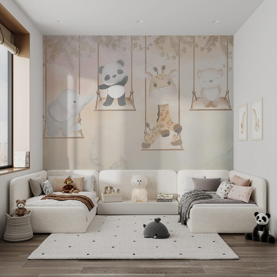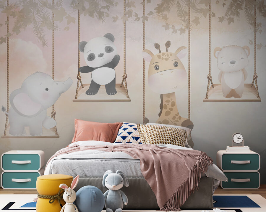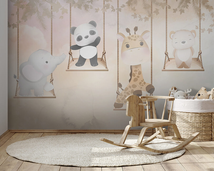 Δείτε αυτή την υπέροχη τοιχογραφία με τίτλο “Ταπετσαρίες Giraffe sitting on a rope swing”. Ιδανική για να προσθέσετε μια δόση ιδιοτροπίας στο δωμάτιο ενός παιδιού, αυτή η τοιχογραφία διαθέτει μια χαριτωμένη καμηλοπάρδαλη που χαλαρώνει σε μια κούνια, περιτριγυρισμένη από αξιολάτρευτους ζωικούς φίλους, όπως ένα πάντα, έναν ελέφαντα και μια αρκούδα. Μπορείτε να φανταστείτε πόσο μαγευτική θα ήταν αυτή η εικόνα στο υπνοδωμάτιο ενός μικρού κοριτσιού; Ή ακόμα και σε μια παιχνιδιάρικη γωνιά στο σαλόνι;