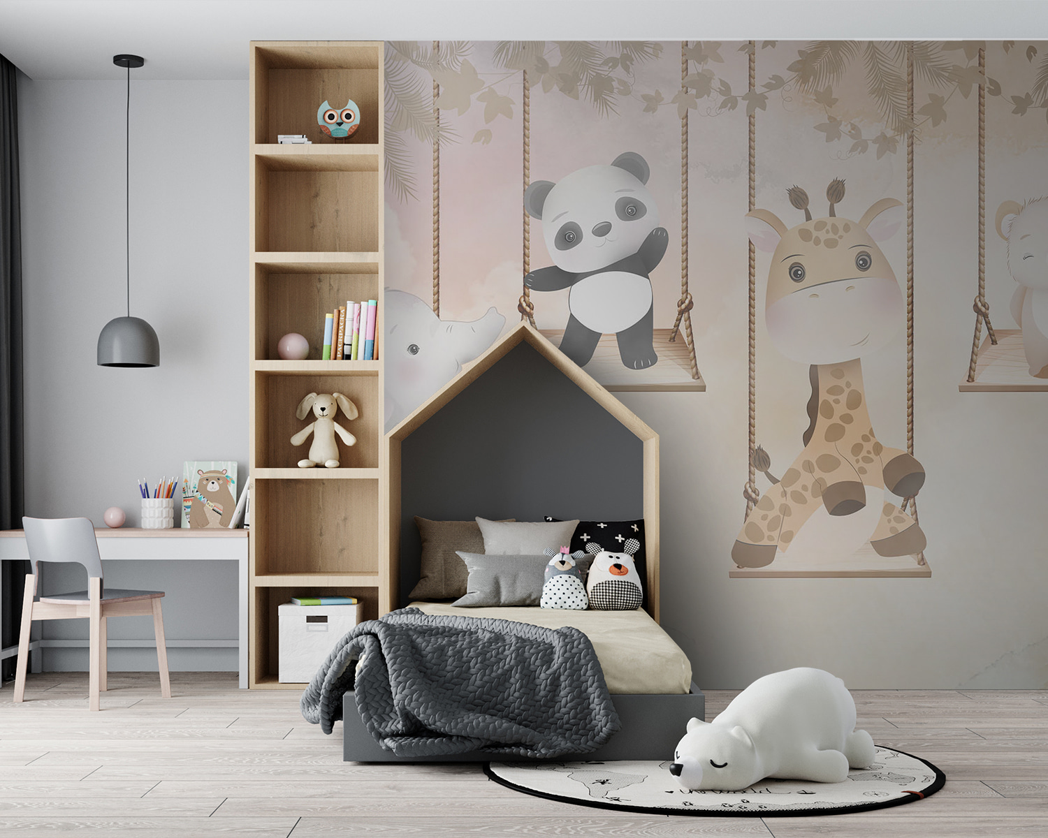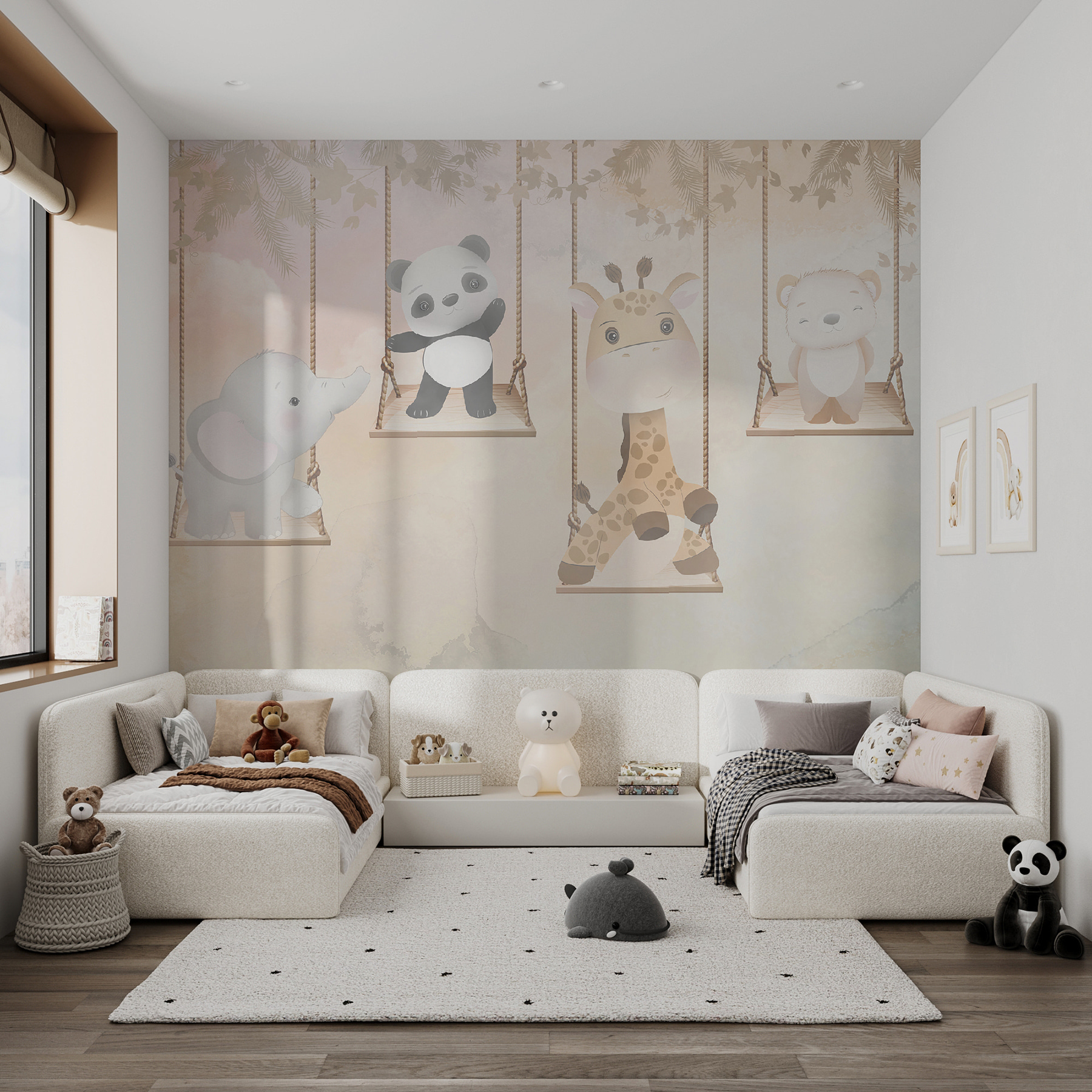 Τα απαλά παστέλ χρώματα και το ονειρικό φόντο το κάνουν να μοιάζει με σκηνή βγαλμένη από παραμύθι. Φανταστείτε την ευχαρίστηση του παιδιού σας καθώς μπαίνει καθημερινά σε αυτόν τον μαγικό χώρο – ίσως μάλιστα να ονειρεύεται περιπέτειες με αυτούς τους γοητευτικούς χαρακτήρες! Επιπλέον, δεν είναι μόνο για παιδιά – κάθε ζωόφιλος θα λατρέψει αυτό το χαρούμενο έργο τέχνης. Είναι μια γλυκιά απόδραση από την καθημερινή φασαρία, προσφέροντας μια παιχνιδιάρικη πινελιά και μια αίσθηση θαυμασμού κάθε φορά που το κοιτάζετε.