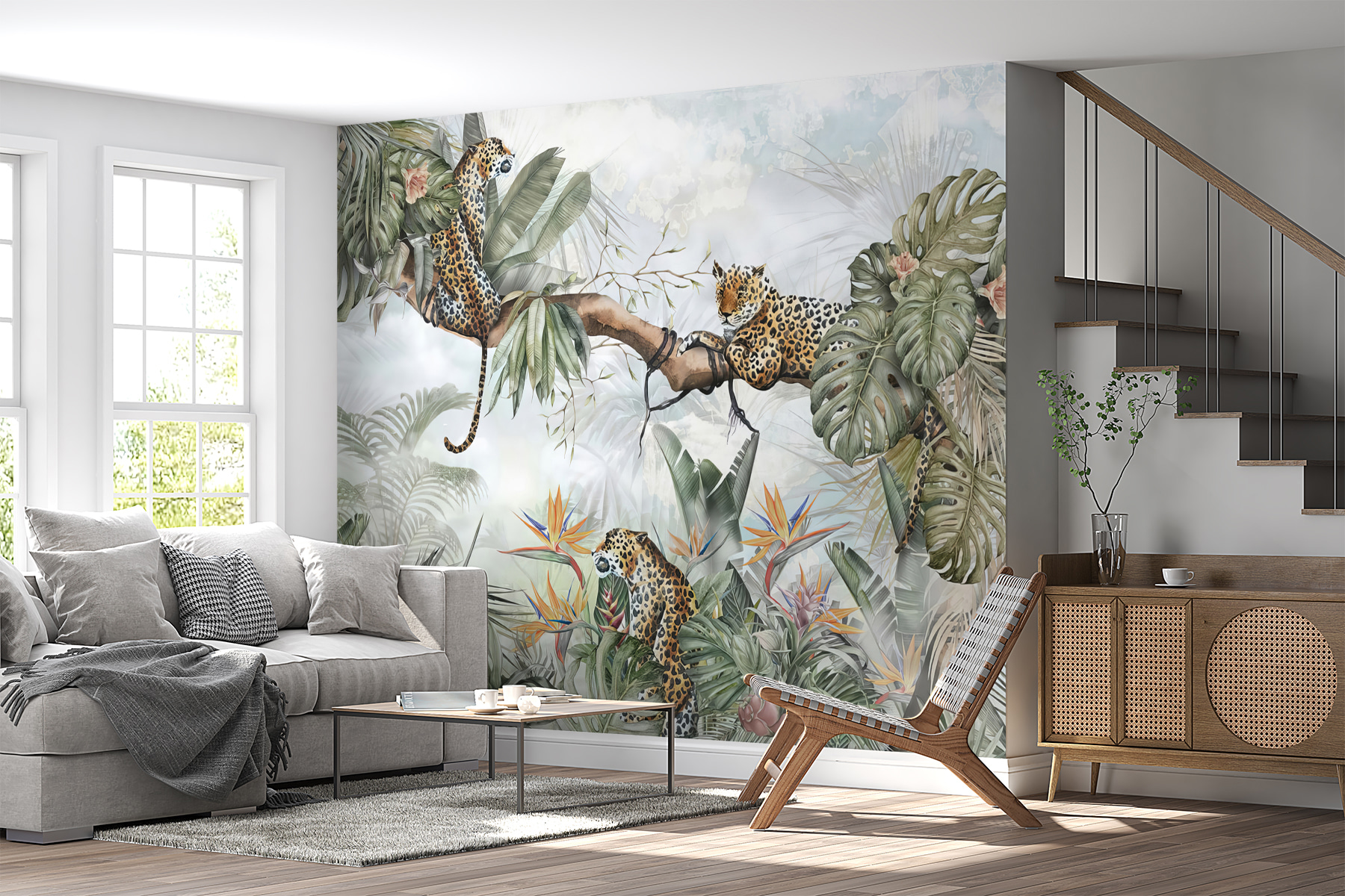 Μεταμορφώστε το χώρο σας με αυτή τη μαγευτική τοιχογραφία με θέαση λεοπάρδαλης σε μια καταπράσινη ζούγκλα. Φανταστείτε μια ζεστή γωνιά όπου τα παιδιά μπορούν να αφήσουν τη φαντασία τους να οργιάσει – είτε πρόκειται για περιπετειώδεις ιστορίες εξερευνητών της ζούγκλας είτε για ήσυχα απογεύματα, αγκαλιά με ένα βιβλίο. Αυτές οι παιχνιδιάρικες λεοπαρδάλεις που είναι σκαρφαλωμένες στα φυλλώδη δέντρα θα κεντρίσουν την περιέργεια και την απορία. Το ζωηρό πράσινο και τα πολύχρωμα άνθη δημιουργούν ένα χαρούμενο σκηνικό που μοιάζει φρέσκο και ζωντανό. Είναι ιδανικό για να προσθέσετε μια βουτιά φύσης σε εσωτερικούς χώρους, κάνοντας κάθε ματιά μια μίνι απόδραση. Έτσι, αναπνεύστε αυτή την ατμόσφαιρα της ζούγκλας και αφήστε τη διασκέδαση να ξεκινήσει!
