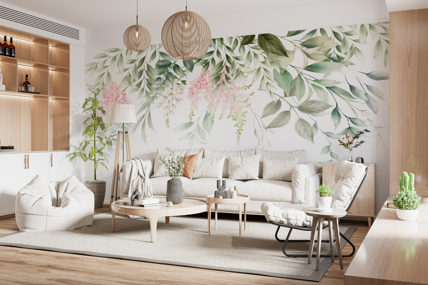 Φανταστείτε να μπαίνετε σε ένα δωμάτιο και να αισθάνεστε αμέσως καταπραϋνόμενοι από αυτή την κομψή φλοράλ τοιχογραφία. Απαλές ροζ και πράσινες αποχρώσεις καταιονίζουν στον τοίχο, σαν ένα απαλό αεράκι κήπου. Είναι ο τέλειος συνδυασμός – μοντέρνος αλλά και διαχρονικός. Ιδανική για ένα σαλόνι, ένα υπνοδωμάτιο ή ακόμη και για ένα κομψό γραφείο στο σπίτι. Τα λεπτεπίλεπτα φύλλα και άνθη μπορεί να σας κάνουν να νιώθετε σαν να χαλαρώνετε σε έναν ηλιόλουστο βοτανικό κήπο, ακόμα και τις πιο βροχερές μέρες. Έτσι, αν ψάχνετε να προσθέσετε μια πινελιά μαγείας εμπνευσμένης από τη φύση στο χώρο σας, αυτή η τοιχογραφία μπορεί να είναι ακριβώς αυτό που χρειάζεστε.