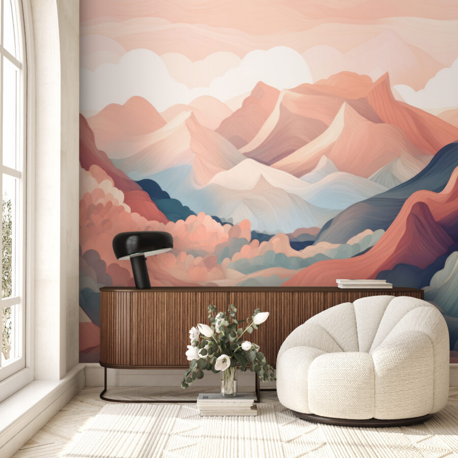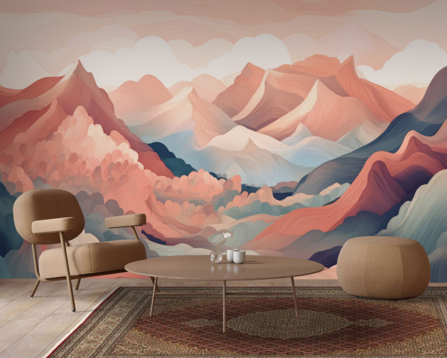 Νιώθετε ότι οι τοίχοι σας χρειάζονται μια έκρηξη ζωής; Δείτε αυτή την τοιχογραφία τοίχου “Πολύχρωμο τοπίο βουνού”! Δεν είναι απλώς η τυπική σας διακόσμηση – μιλάμε για μια περιπέτεια για τις αισθήσεις σας ακριβώς στο σαλόνι σας. Φανταστείτε να αράζετε στον καναπέ σας, ατενίζοντας τις παστέλ κορυφές και τα στροβιλώδη σχέδια που πρακτικά σας καλούν να ονειροπολήσετε. Είναι σαν ένα μίνι ταξίδι σε μια μακρινή χώρα χωρίς να βγείτε από το σπίτι σας.