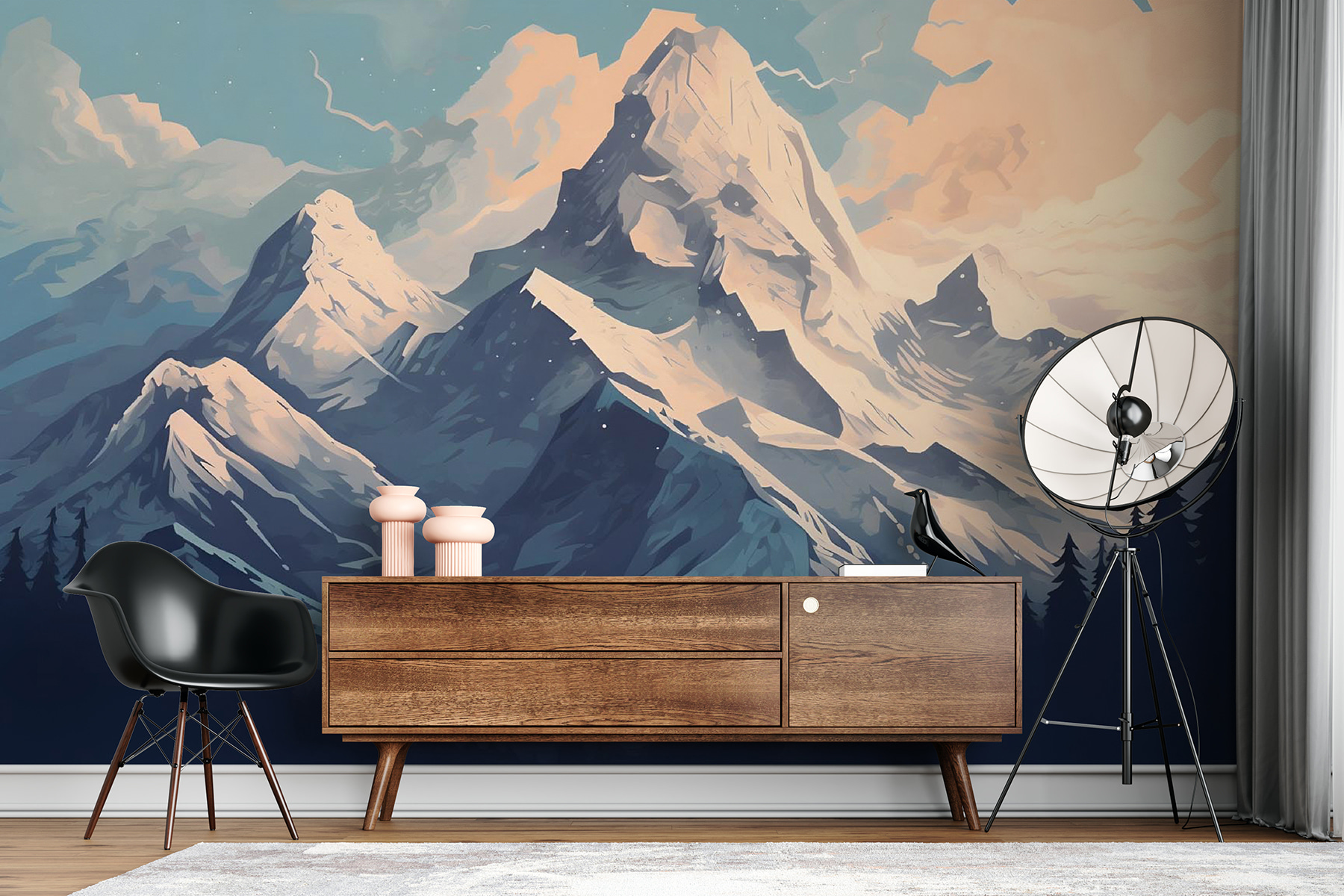 Φανταστείτε να μπαίνετε σε μια ζεστή καμπίνα, με τη μυρωδιά του πεύκου να πλανάται στον αέρα, και να ‘τη’ η τοιχογραφία με τα πανύψηλα βουνά τυλιγμένα σε χιονισμένες κουβέρτες και χνουδωτά σύννεφα. Αυτό το έργο δεν είναι απλώς ένα σκηνικό- είναι μια πρόσκληση για να ονειρευτείτε τα τραγανά πρωινά των Άλπεων και τις περιπέτειες που σας περιμένουν ακριβώς πίσω από την πόρτα σας. Φανταστείτε να πίνετε ζεστό κακάο ενώ ο κόσμος έξω είναι σκεπασμένος στα λευκά και το μόνο που βλέπετε είναι αυτές οι μαγευτικές κορυφές. Ιδανική για ένα σαλόνι ή μια γωνιά ανάγνωσης, αυτή η τοιχογραφία φέρνει την ύπαιθρο μέσα, κάνοντας κάθε ματιά να μοιάζει με μια μίνι απόδραση. Ιδανική για όσους λαχταρούν ένα άγγιγμα από το μεγαλείο της φύσης χωρίς να παγώνουν!