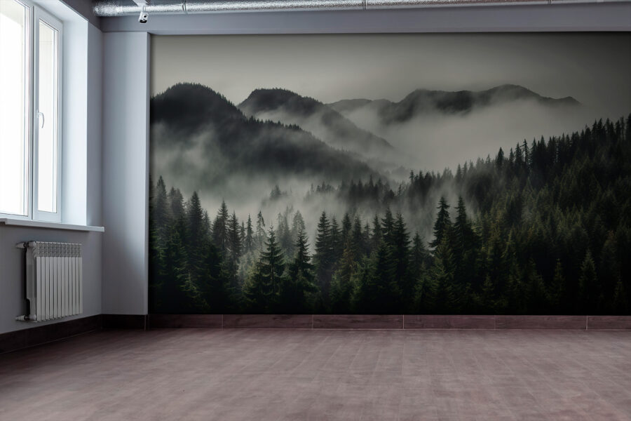 Φανταστείτε να μετατρέψετε το χώρο σας σε ένα γαλήνιο δασικό καταφύγιο με αυτή την εκπληκτική τοιχογραφία με δέντρα και ομιχλώδη βουνά. Είναι σαν να μπαίνετε σε ένα παραμύθι κάθε φορά που μπαίνετε στο δωμάτιο. Ιδανικό για όσους αγαπούν την ύπαιθρο – χωρίς να χρειάζεται να ανησυχούν για τα έντομα ή τον καιρό. Το πυκνό δάσος που σβήνει στα θολά βουνά είναι απλά μαγικό, σχεδόν σαν τα δέντρα να ψιθυρίζουν μυστικά το ένα στο άλλο.