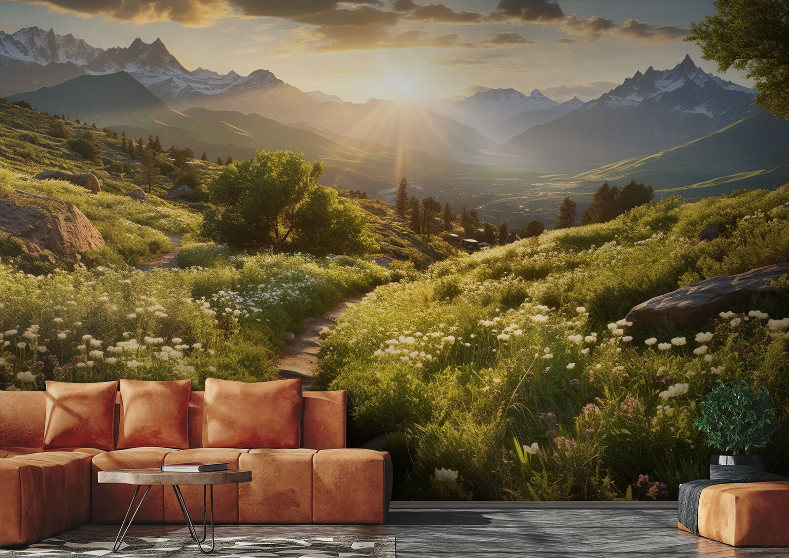Εντάξει, φανταστείτε το εξής: βρίσκεστε στο σαλόνι σας, αλλά ξαφνικά δεν είστε. Αυτή η τοιχογραφία; Το κάνει αυτό. Είναι σαν να μπαίνεις σε ένα γαλήνιο καταφύγιο, περιτριγυρισμένο από ένα καταπράσινο δέντρο και επιβλητικά βουνά στο βάθος. Σχεδόν θα νιώσετε τον καθαρό αέρα του βουνού και θα ακούσετε το θρόισμα των φύλλων.