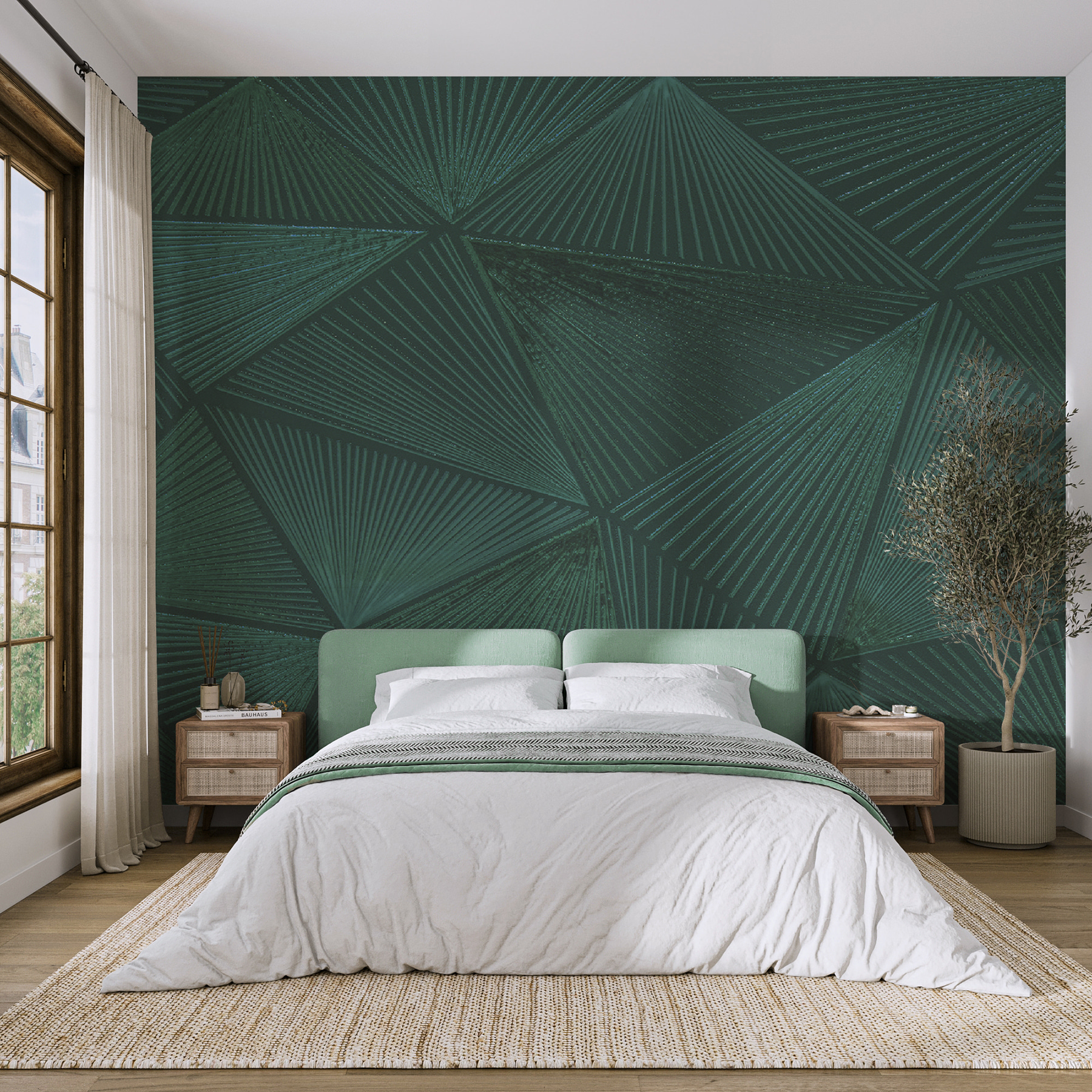 Έχετε νιώσει ποτέ ότι οι τοίχοι σας χρειάζονται λίγη ανανέωση; Αυτή η τοιχογραφία τοίχου “Πράσινο μωσαϊκό με γεωμετρικά μοτίβα” μπορεί να είναι αυτό που ψάχνετε. Έχει αυτό το δροσερό, αφηρημένο ύφος με περίπλοκες γραμμές και σχήματα που ξεπροβάλλουν. Σοβαρά, είναι σαν ένα έργο τέχνης στον τοίχο σας! Φανταστείτε να έρχεστε σπίτι μετά από μια κουραστική μέρα, να κάθεστε με ένα φλιτζάνι τσάι και να χάνεστε σε αυτά τα μαγευτικά μοτίβα. Επιπλέον, είναι πράσινο, οπότε φέρνετε κατά κάποιο τρόπο λίγο από τη φύση μέσα στο σπίτι χωρίς να χρειάζεται να ποτίσετε τίποτα. Ιδανικό για να ομορφύνετε το σαλόνι σας ή να προσθέσετε μια καλλιτεχνική πινελιά στο γραφείο σας. Μια μικρή συμβουλή: δοκιμάστε να το συνδυάσετε με έπιπλα σε ζεστούς τόνους για να εξισορροπήσετε το δροσερό πράσινο. Μεταμορφώνει εντελώς έναν χώρο – σχεδόν σαν μαγεία!
