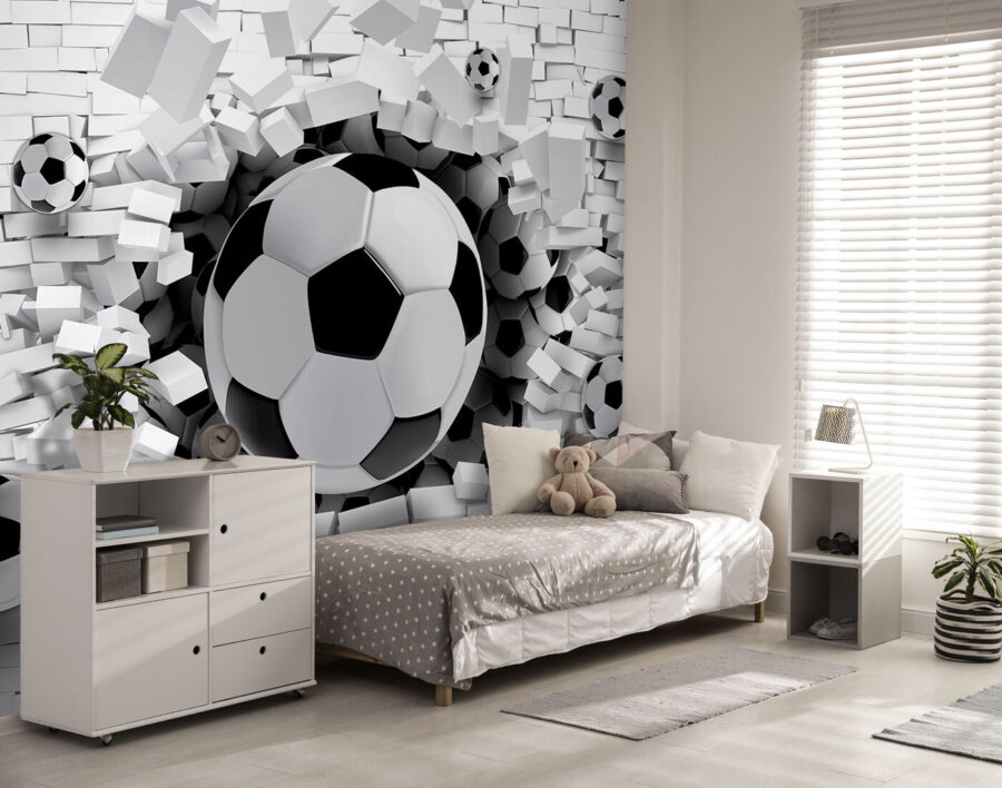 Μεταμορφώστε οποιοδήποτε δωμάτιο σε ένα αθλητικό καταφύγιο με αυτή την εντυπωσιακή τοιχογραφία τοίχου με ένα ασπρόμαυρο ποδόσφαιρο που διαπερνά έναν τοίχο. Είναι σαν το πνεύμα του παιχνιδιού να κλώτσησε την πόρτα και να προσκλήθηκε να μπει μέσα! Ιδανική για τα παιδιά που ονειρεύονται να πετύχουν το νικητήριο γκολ ή για οποιονδήποτε απλώς αγαπά τη συγκίνηση του παιχνιδιού. Φανταστείτε τα χαμόγελα και τον ενθουσιασμό που θα φέρει – κάθε ματιά μοιάζει σαν να βρίσκεστε στο γήπεδο, να αποφεύγετε τους αμυντικούς και να πανηγυρίζετε αυτά τα επικά γκολ. Ο απλός αλλά εντυπωσιακός σχεδιασμός του το καθιστά εύκολο να ταιριάξει σε κάθε χώρο, οπότε είτε πρόκειται για ένα παιδικό δωμάτιο είτε για ένα υπνοδωμάτιο, αυτή η τοιχογραφία φέρνει ενέργεια και διασκέδαση. Επιπλέον, αποτελεί το τέλειο σκηνικό για τις οικογενειακές βραδιές παιχνιδιών. Ετοιμαστείτε να απογειώσετε τη διακόσμησή σας!