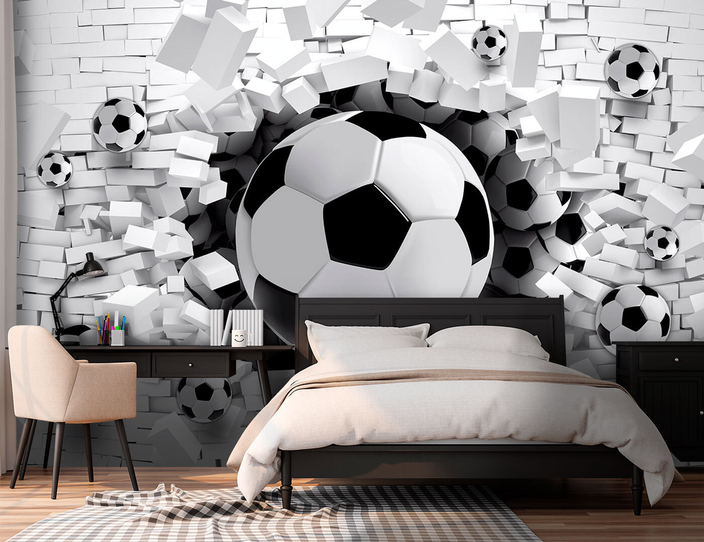 Μεταμορφώστε οποιοδήποτε δωμάτιο σε ένα αθλητικό καταφύγιο με αυτή την εντυπωσιακή τοιχογραφία τοίχου με ένα ασπρόμαυρο ποδόσφαιρο που διαπερνά έναν τοίχο. Είναι σαν το πνεύμα του παιχνιδιού να κλώτσησε την πόρτα και να προσκλήθηκε να μπει μέσα! Ιδανική για τα παιδιά που ονειρεύονται να πετύχουν το νικητήριο γκολ ή για οποιονδήποτε απλώς αγαπά τη συγκίνηση του παιχνιδιού. Φανταστείτε τα χαμόγελα και τον ενθουσιασμό που θα φέρει – κάθε ματιά μοιάζει σαν να βρίσκεστε στο γήπεδο, να αποφεύγετε τους αμυντικούς και να πανηγυρίζετε αυτά τα επικά γκολ. Ο απλός αλλά εντυπωσιακός σχεδιασμός του το καθιστά εύκολο να ταιριάξει σε κάθε χώρο, οπότε είτε πρόκειται για ένα παιδικό δωμάτιο είτε για ένα υπνοδωμάτιο, αυτή η τοιχογραφία φέρνει ενέργεια και διασκέδαση. Επιπλέον, αποτελεί το τέλειο σκηνικό για τις οικογενειακές βραδιές παιχνιδιών. Ετοιμαστείτε να απογειώσετε τη διακόσμησή σας!
