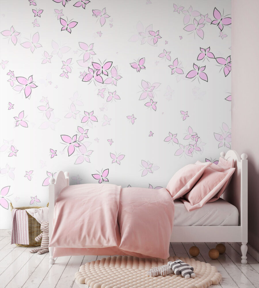 Μεταμορφώστε τον χώρο σας σε έναν κήπο με πεταλούδες με αυτή την υπέροχη ταπετσαρία! Φανταστείτε να μπαίνετε σε ένα δωμάτιο όπου απαλές ροζ πεταλούδες πετούν απαλά πάνω σε ένα κατάλευκο φόντο — πραγματικά, είναι ένα όνειρο που γίνεται πραγματικότητα. Η ελαφριά και αέρινη ατμόσφαιρα αυτής της ταπετσαρίας την καθιστά ιδανική για να φωτίσει οποιαδήποτε γωνιά, είτε πρόκειται για μια ζεστή γωνιά ανάγνωσης είτε για ένα ζωντανό δωμάτιο παιχνιδιών. Φανταστείτε να πίνετε τον πρωινό σας καφέ περιτριγυρισμένοι από αυτά τα όμορφα μικρά πλάσματα και να νιώθετε αμέσως αναζωογονημένοι. Είναι σαν να έχετε ένα κομμάτι της φύσης στο εσωτερικό του σπιτιού σας, χωρίς τα έντομα! Ιδανική για όσους λατρεύουν τη μοναδική διακόσμηση, η φανταστική γοητεία αυτής της τοιχογραφίας προσθέτει την κατάλληλη πινελιά μαγείας — γιατί ποιος δεν θα ήθελε οι τοίχοι του να εμπνέουν ένα μικρό θαύμα;