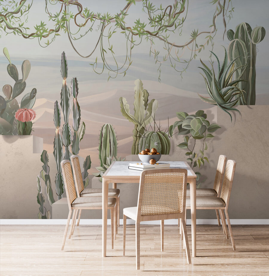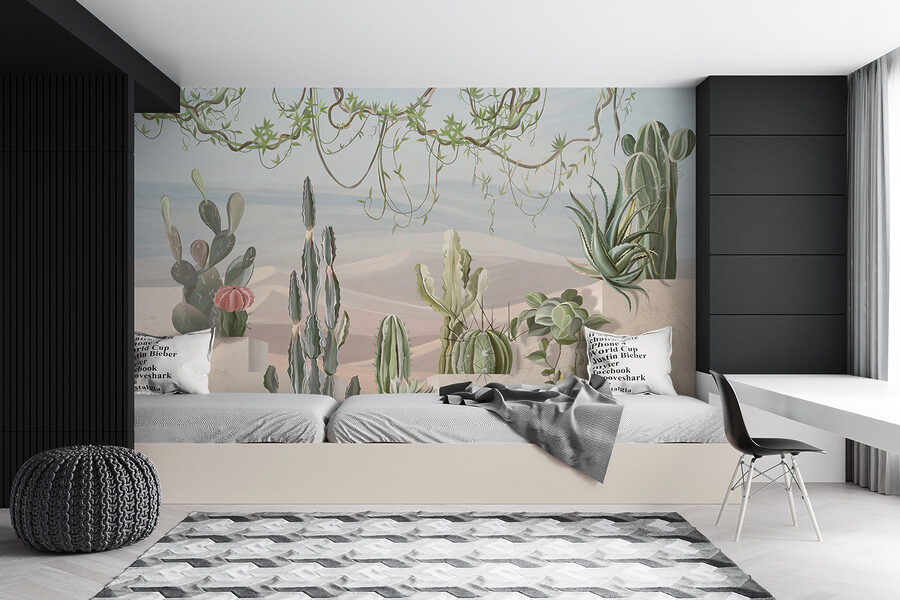 Φανταστείτε να μπαίνετε στο δωμάτιό σας και να αισθάνεστε σαν να έχετε μόλις περιπλανηθεί σε μια μαγευτική όαση της ερήμου. Αυτή η τοιχογραφία τοίχου “Desert Plants Decorate Sunny Steps” κάνει ακριβώς αυτό. Με τους γοητευτικούς κάκτους και το πλούσιο πράσινο, δημιουργεί ένα χαλαρωτικό μείγμα ζεστασιάς και ηρεμίας. Είναι σαν ο ήλιος να φιλάει τους τοίχους σας κάθε πρωί! Ιδανικό για να κάνετε τους μικρότερους χώρους να μοιάζουν μεγαλύτεροι, αυτό το τρισδιάστατο αριστούργημα προσθέτει βάθος και διάσταση. Οι φίλοι θα ξετρελαθούν με το πόσο ζωντανό και γαλήνιο φαίνεται. Επιπλέον, δεν χρειάζεται πότισμα – το είδος του κήπου σας!