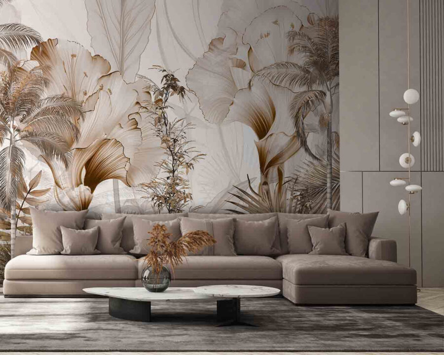 Σκέφτεστε να δώσετε στο χώρο σας μια πινελιά εξωτισμού; Ελέγξτε τις “Τοιχογραφίες τοίχου Τροπικό φύλλωμα σε τόνους του Sepia”. Φανταστείτε τις απαλές, ζεστές αποχρώσεις της σέπια να μετατρέπουν τους τοίχους σας σε μια κομψή απόδραση από τη ζούγκλα – τέλεια για εκείνες τις θλιβερές μέρες που χρειάζεστε μια πνευματική απόδραση. Ο συνδυασμός φυλλωμάτων και σχεδίων δέντρων δίνει μια πλούσια, πολυεπίπεδη ατμόσφαιρα που μετατρέπει κάθε δωμάτιο σε ένα εκλεπτυσμένο τροπικό καταφύγιο. Είναι σαν να φέρνετε το τροπικό δάσος στο σαλόνι σας χωρίς να χρειάζεται να ασχοληθείτε με την υγρασία ή τα έντομα – μπόνους! Επιπλέον, είναι αρκετά ευπροσάρμοστο ώστε να ταιριάζει σε μινιμαλιστικούς χώρους ή να συμπληρώνει με ευκολία την πιο πολυσύχναστη διακόσμηση. Είτε πρόκειται για την κρεβατοκάμαρά σας είτε για το γραφείο σας, αυτή η τοιχογραφία φωτίζει το χώρο με μια φιλόξενη, ζεστή ατμόσφαιρα. Σχεδόν θα ακούσετε το θρόισμα των φύλλων και θα νιώσετε ένα απαλό αεράκι. Έχετε έναν φίλο που λατρεύει την πλούσια, εμπνευσμένη από τη φύση διακόσμηση; Θα το λατρέψουν αυτό!