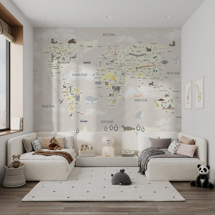 Μεταμορφώστε οποιοδήποτε δωμάτιο σε μια μίνι ζώνη περιπέτειας με αυτή τη γοητευτική τοιχογραφία του κόσμου. Δεν είναι ένας οποιοσδήποτε χάρτης – είναι ένα πολύχρωμο μωσαϊκό από χώρες, παιχνιδιάρικα ζώα και παράξενες λεπτομέρειες που μπορούν να κεντρίσουν την περιέργεια σε παιδιά και μεγάλους. Φανταστείτε τα χαχανητά όταν οι μικροί εξερευνητές δείχνουν τα αγαπημένα τους μέρη ή εντοπίζουν μια θρασύτατη φάλαινα να κολυμπάει δίπλα τους. Αυτή η τοιχογραφία είναι κάτι περισσότερο από διακόσμηση- είναι έναυσμα για συζήτηση, εργαλείο μάθησης και, ειλικρινά, ένα ζεστό μέρος για ονειροπολήσεις. Ιδανική για ένα παιδικό δωμάτιο ή έναν παιχνιδιάρικο χώρο, προσκαλεί όλους να ξεκινήσουν ένα παγκόσμιο ταξίδι χωρίς να φύγουν από το σπίτι. Η διακόσμηση δεν χρειάζεται να είναι σοβαρή, σωστά; Απλά κρεμάστε το και δείτε τη μαγεία να ξεδιπλώνεται!