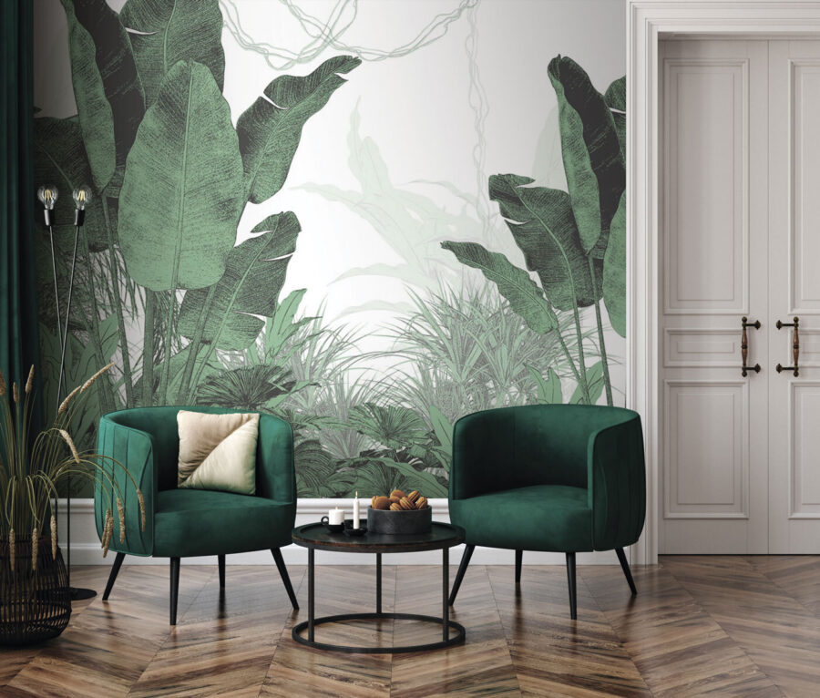 Μεταμορφώστε το χώρο σας σε μια ζωντανή όαση με την τοιχογραφία “Lush Greenery”. Σκεφτείτε πλούσια, τροπικά φυλλώματα στον τοίχο σας – είναι σαν να μπαίνετε σε μια ζούγκλα χωρίς την υγρασία. Ιδανική για να προσθέσετε μια πινελιά φύσης σε οποιοδήποτε δωμάτιο, αυτή η τοιχογραφία φέρνει καταπραϋντικά, φυλλώδη πράσινα που μπορεί να σας κάνουν να ξεχάσετε ότι βρίσκεστε σε εσωτερικό χώρο. Φανταστείτε να πίνετε τον πρωινό σας καφέ, περιτριγυρισμένοι από αυτή τη φρέσκια, καταπράσινη σκηνή.