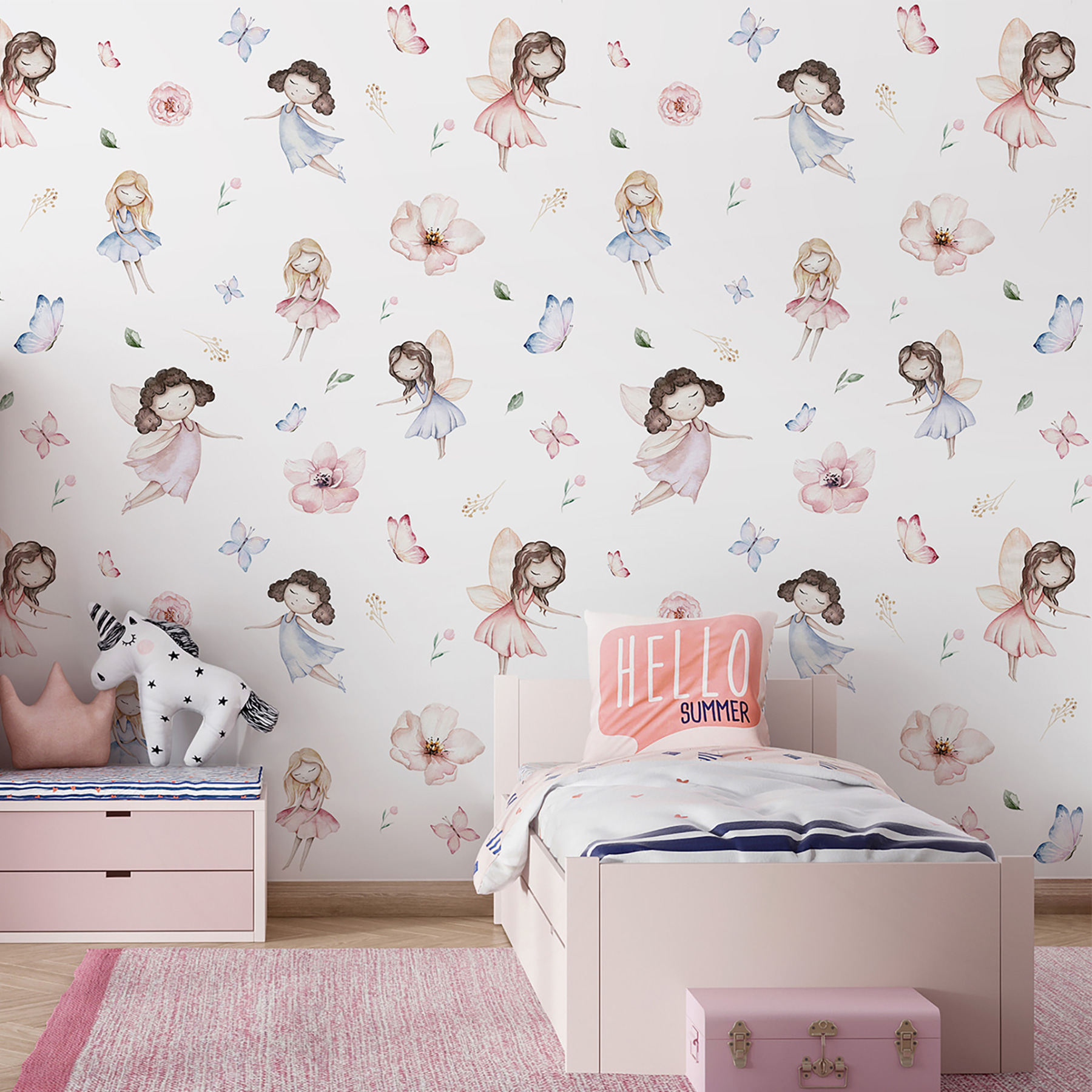 Φανταστείτε να μπαίνετε σε ένα δωμάτιο και να σας υποδέχεται αυτή η μαγευτική τοιχογραφία. Είναι σαν να μπαίνετε σε ένα ιδιόρρυθμο παραμύθι, σωστά; Αυτή η τοιχογραφία “Σχέδιο ενός κοριτσιού με φόρεμα” ξεχειλίζει από γοητεία και αθωότητα. Ιδανική για το χώρο του μικρού σας, διαθέτει γλυκές απεικονίσεις κοριτσιών με υπέροχα φορέματα, που περιβάλλονται από πεταλούδες που φτερουγίζουν και ντελικάτα λουλούδια.