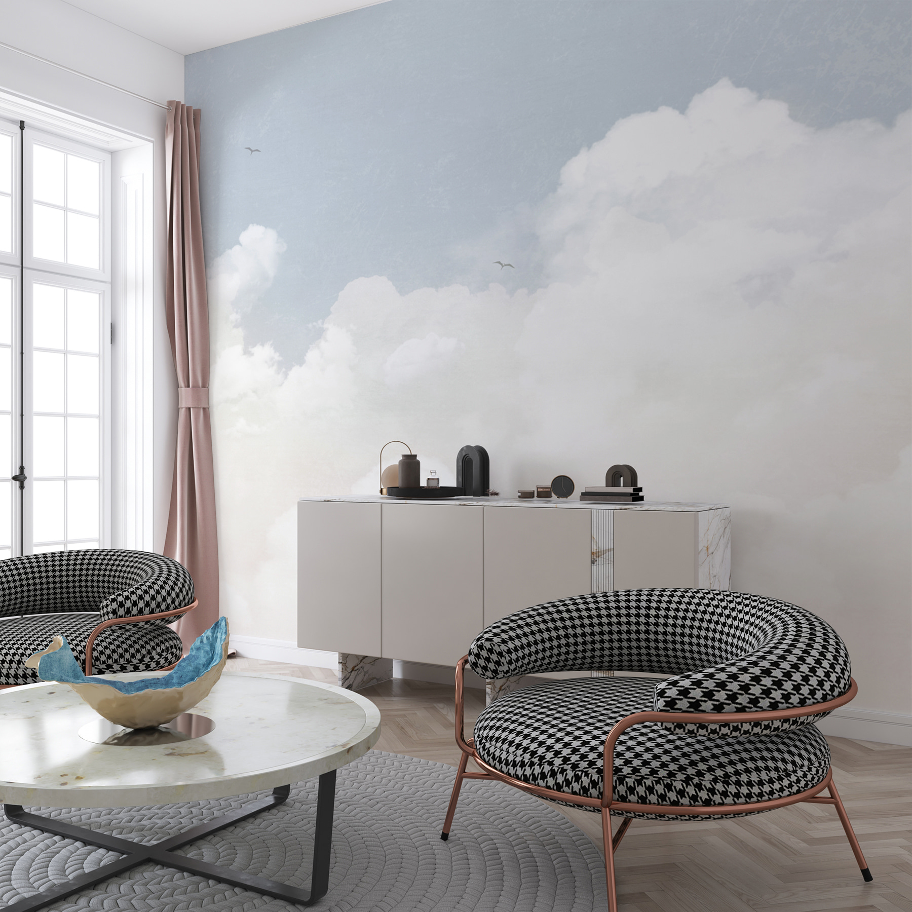 Φανταστείτε να φέρνετε τον ουρανό στο σαλόνι σας – αυτό κάνει αυτή η τοιχογραφία “Λευκό σύννεφο στον ουρανό”. Είναι σαν ένα παράθυρο σε μια πάντα ηλιόλουστη μέρα με απαλά, χνουδωτά σύννεφα που θα σας κάνουν να νιώθετε σαν να χαλαρώνετε στον ουρανό. Ξέρετε εκείνες τις μέρες που ξαπλώνετε, κοιτάτε ψηλά και παρακολουθείτε τα σύννεφα να περνούν; Αυτή η τοιχογραφία το αποτυπώνει τέλεια.