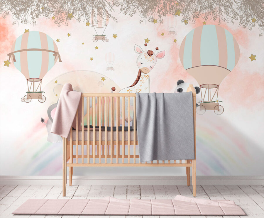 Φωτίστε το δωμάτιο κάθε παιδιού με αυτή τη μαγευτική τοιχογραφία με μπαλόνι θερμού αέρα! Φανταστείτε έναν ονειρικό ουρανό γεμάτο με ιδιόρρυθμα μπαλόνια που αιωρούνται πάνω από αξιολάτρευτα ζώα – όπως μια γοητευτική καμηλοπάρδαλη, ένα παιχνιδιάρικο πάντα και ένα γλυκό μικρό ελέφαντα. Είναι μια σκηνή που προσκαλεί σε περιπέτεια και εξάπτει τη φαντασία. Φανταστείτε τα μικρά παιδιά να το κοιτάζουν, να παρασύρονται στη χώρα των ονείρων και να ονειρεύονται να πετάξουν ψηλά πάνω από τα σύννεφα. Τα απαλά χρώματα δημιουργούν μια ζεστή ατμόσφαιρα, ιδανική για αγκαλιάρικες ιστορίες πριν τον ύπνο. Αυτή η τοιχογραφία δεν είναι απλώς διακόσμηση- είναι μια πύλη σε έναν φανταστικό κόσμο. Ποιος δεν θα ήθελε να συμμετάσχει σε αυτές τις βόλτες με αερόστατα; Θα μεταμορφώσει κάθε χώρο σε ένα παιχνιδιάρικο καταφύγιο!