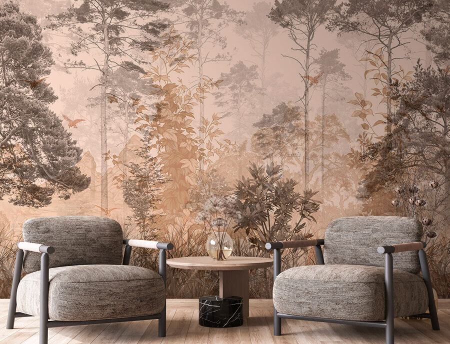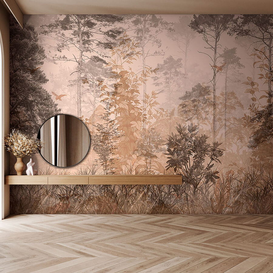 Οι χαμηλοί τόνοι φέρνουν μια ηρεμιστική ατμόσφαιρα, ιδανική για να χαλαρώσετε μετά από μια κουραστική μέρα. Φανταστείτε τον εαυτό σας να πίνει τσάι και να χάνεται στις περίπλοκες λεπτομέρειες των δέντρων και των φύλλων. Είναι σαν να ζωντανεύει το δάσος στον τοίχο σας – χωρίς τα έντομα, φυσικά! Ιδανικό για όποιον χρειάζεται μια μικρή απόδραση, χωρίς να βγει ποτέ από το σπίτι. Αυτή η τοιχογραφία δεν διακοσμεί απλώς, αλλά μεταμορφώνει, δημιουργώντας ένα ζεστό καταφύγιο που αισθάνεται ακριβώς όπως πρέπει.