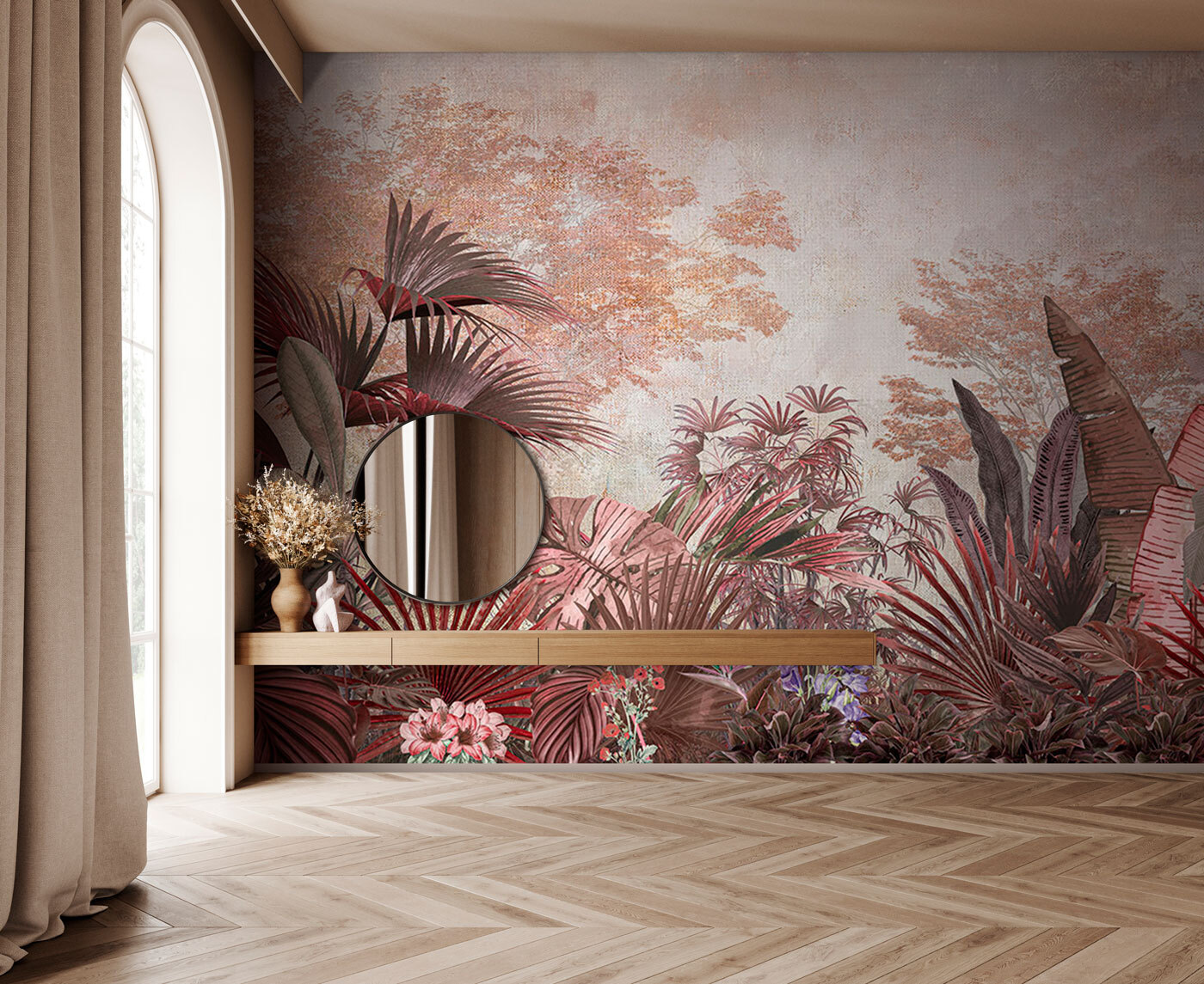 Ονειρευτήκατε ποτέ να χαλαρώσετε σε μια τροπική ζούγκλα χωρίς να ιδρώνετε μέσα από το πουκάμισό σας; Αυτή η τοιχογραφία “Tropical Foliage” σας καλύπτει. Με τα απαλά χρώματα και τον πλούσιο σχεδιασμό της, είναι σαν να φέρνετε έναν μικρό παράδεισο στο σπίτι σας. Φανταστείτε να πίνετε τον πρωινό σας καφέ ενώ περιβάλλεστε από φύλλα φοίνικα και δέντρα ζούγκλας, χωρίς να ανησυχείτε για έντομα ή υγρασία. Ιδανικό για να δώσετε χρώμα στο σαλόνι σας ή να δημιουργήσετε μια ζεστή γωνιά ανάγνωσης. Επιπλέον, οι καλεσμένοι θα νομίζουν ότι έχετε πράσινο δάχτυλο – δεν χρειάζεται να το αποκαλύψετε! Είναι έναυσμα για συζήτηση και μια μίνι-διακοπή σε μια πανέμορφη τοιχογραφία.