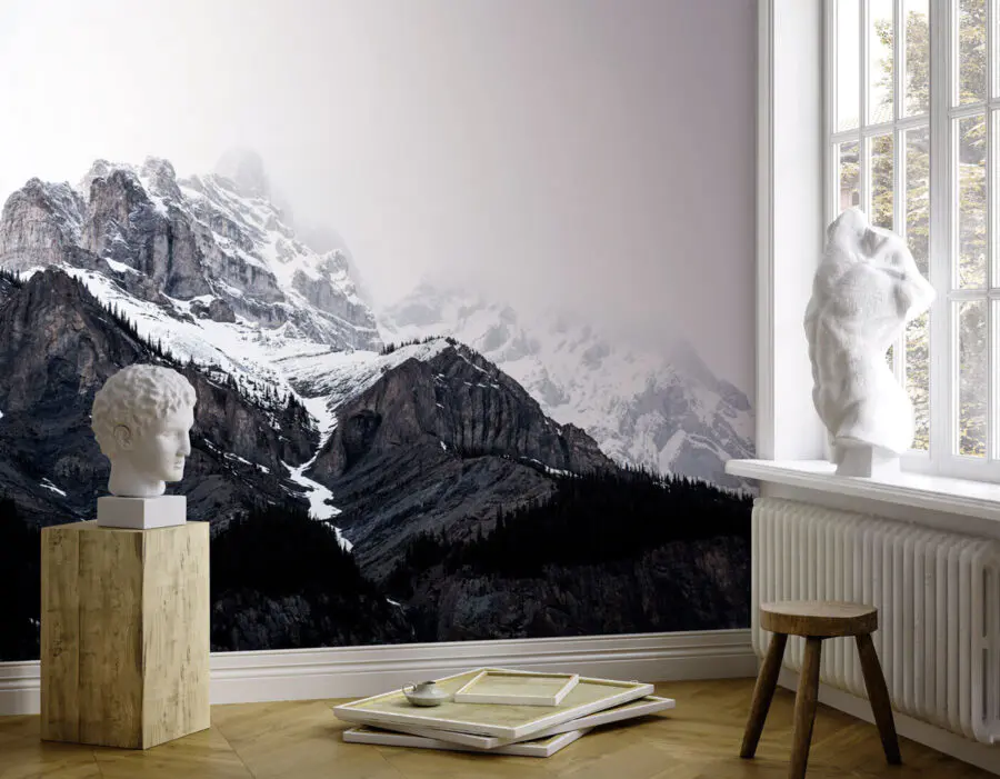 Τοποθετήστε αυτή την τοιχογραφία στο σαλόνι ή την κρεβατοκάμαρά σας και ξαφνικά, κάθε μέρα θα μοιάζει λίγο πιο περιπετειώδης. Μπορείτε σχεδόν να νιώσετε το δροσερό αεράκι και να ακούσετε το απαλό τρίξιμο του χιονιού κάτω από τις μπότες. Επιπλέον, αυτή η έντονη αντίθεση των σκούρων, τραχιών βράχων με το λευκό χιόνι; Τόσο δραματική, αλλά και ηρεμιστική.