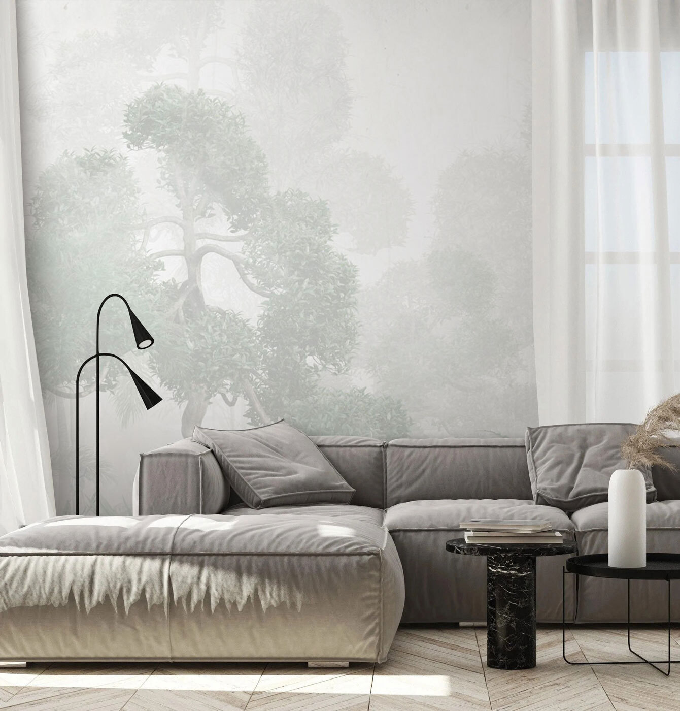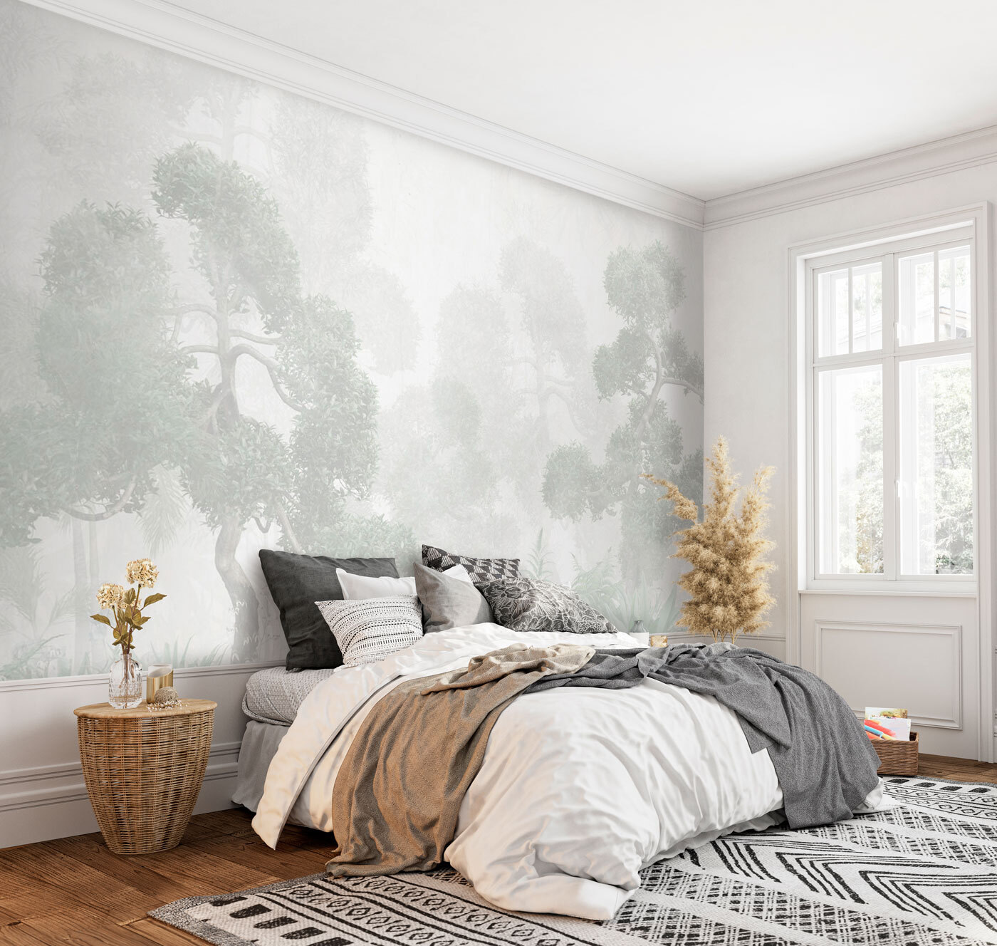 Μεταμορφώστε το χώρο σας σε μια γαλήνια απόδραση με αυτή την τοιχογραφία τοίχου με ένα ομιχλώδες δάσος, φυτά και φτέρες. Φανταστείτε τον εαυτό σας να περιπλανιέται μέσα σε μια απαλή ομίχλη, με τις γήινες μυρωδιές της φύσης να γεμίζουν τον αέρα. Είναι το τέλειο σκηνικό για άνετες συζητήσεις με καφέ ή ένα γαλήνιο καταφύγιο για να διαβάσετε εκείνο το βιβλίο στο οποίο θέλετε να βουτήξετε. Ιδανική για κάθε δωμάτιο που αποζητά μια πινελιά ηρεμίας, αυτή η τοιχογραφία προσφέρει ένα ήρεμο περιβάλλον που μοιάζει ανέγγιχτο από τον χρόνο. Συνδυάστε το με κάποιο απαλό φωτισμό και μια άνετη καρέκλα και έχετε το δικό σας μυστικό καταφύγιο στο σπίτι σας.