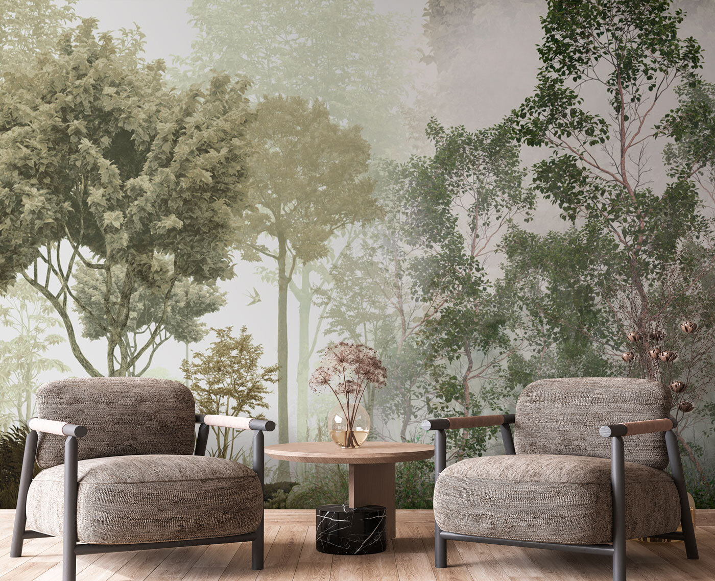 Φανταστείτε να μπαίνετε στο σαλόνι σας και να αισθάνεστε σαν να έχετε περιπλανηθεί σε ένα γαλήνιο, ομιχλώδες δάσος. Αυτό είναι που φέρνει αυτή η τοιχογραφία τοίχου “Misty Forest with Lush Greenery” – ένα κομμάτι από την ηρεμία της φύσης κατευθείαν στο σπίτι σας. Μπορείτε σχεδόν να ακούσετε τα πουλιά να κελαηδούν στις κορυφές των δέντρων και τα φύλλα να θροΐζουν στο απαλό αεράκι. Ιδανικό για όσους ονειρεύονται υπαίθριες περιπέτειες, αλλά αγαπούν τη θαλπωρή του εσωτερικού χώρου. Είναι πλούσιο, ζωντανό και ακριβώς το σωστό ποσό μυστηριώδους – σκεφτείτε ομιχλώδη πρωινά με ένα ζεστό φλιτζάνι καφέ στο χέρι. Επιπλέον, είναι ένα εξαιρετικό στοιχείο για συζήτηση όταν έρχονται καλεσμένοι. Μεταμορφώστε οποιονδήποτε χώρο και χαθείτε σε αυτόν τον πράσινο παράδεισο.