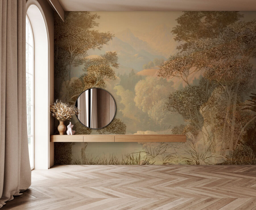 Φανταστείτε αυτό στον τοίχο σας: “Δέντρο μπροστά από ένα βουνό”, μια τοιχογραφία που ψιθυρίζει γαλήνη στο χώρο σας. Με το πλούσιο φύλλωμά του και το επιβλητικό σκηνικό του, είναι σαν να έχετε ένα παράθυρο που ανοίγει κατευθείαν στην ίδια την ηρεμία. Μπορείτε σχεδόν να νιώσετε την αύρα του βουνού; Ιδανικό για τους λάτρεις της φύσης ή για όποιον θέλει να ξεφύγει από τη φασαρία, αυτό το κομμάτι ταιριάζει αβίαστα με τροπικά vibes ή ένα χαλαρό θέμα ζούγκλας. Οι φίλοι σας μπορεί ακόμη και να κάνουν μια διπλή ματιά, νομίζοντας ότι μετακομίσατε σε κάποιον κρυφό παράδεισο. Ταιριάζει καλά με μια άνετη γωνιά ανάγνωσης ή μια γωνιά διαλογισμού. Βλέποντας το καθημερινά θα μπορούσατε να κάνετε τα πρωινά σας λίγο πιο γαλήνια, τα βράδια σας λίγο πιο ήρεμα. Και όλοι μπορούμε να χρησιμοποιήσουμε λίγο περισσότερο από αυτό, σωστά;