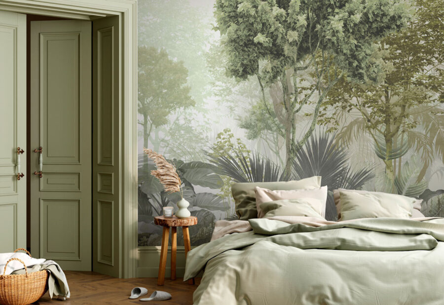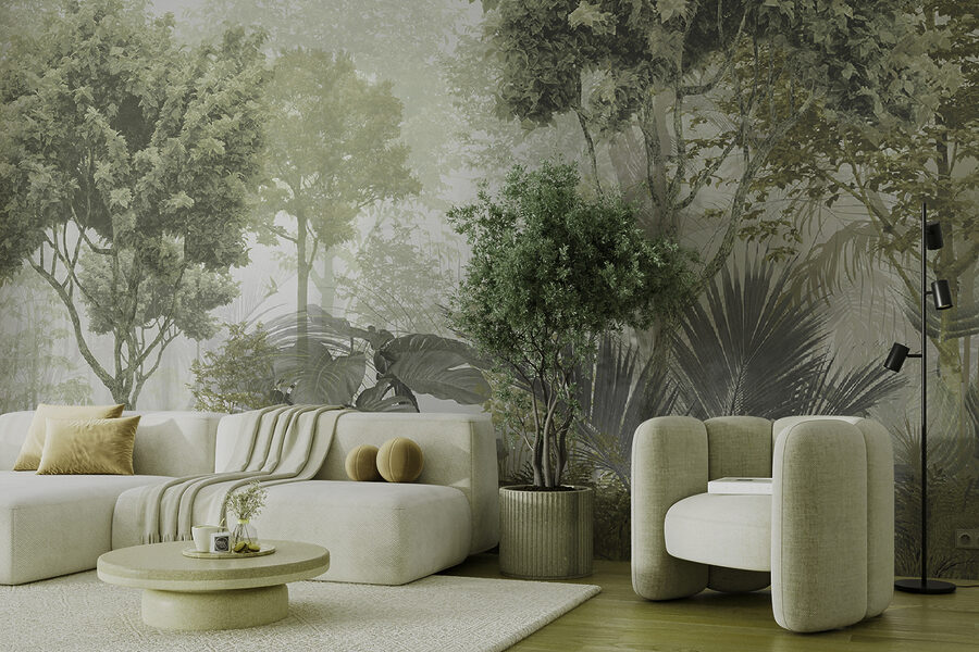 Θέλατε ποτέ να νιώσετε ότι περιπλανιέστε σε ένα ομιχλώδες δάσος από το σαλόνι σας; Αυτή η τοιχογραφία “Ομάδα δέντρων σε ένα ομιχλώδες δάσος” είναι σαν μια ονειρική απόδραση σε μια γαλήνια ζούγκλα. Σοβαρά, είναι σαν να μπαίνετε σε μια τροπική απόδραση χωρίς τα αεροπορικά εισιτήρια. Τα πλούσια, φυλλώδη πράσινα και η απαλή ομίχλη δίνουν αυτή την ηρεμιστική, σχεδόν μαγική ατμόσφαιρα. Φανταστείτε να διαβάζετε το αγαπημένο σας βιβλίο με φόντο αυτή την ειρηνική σκηνή – απόλυτο ζεν. Επιπλέον, φανταστείτε τα κομπλιμέντα που θα πάρετε όταν οι φίλοι σας μπουν μέσα και νιώσουν ότι βρίσκονται σε περιπέτεια!