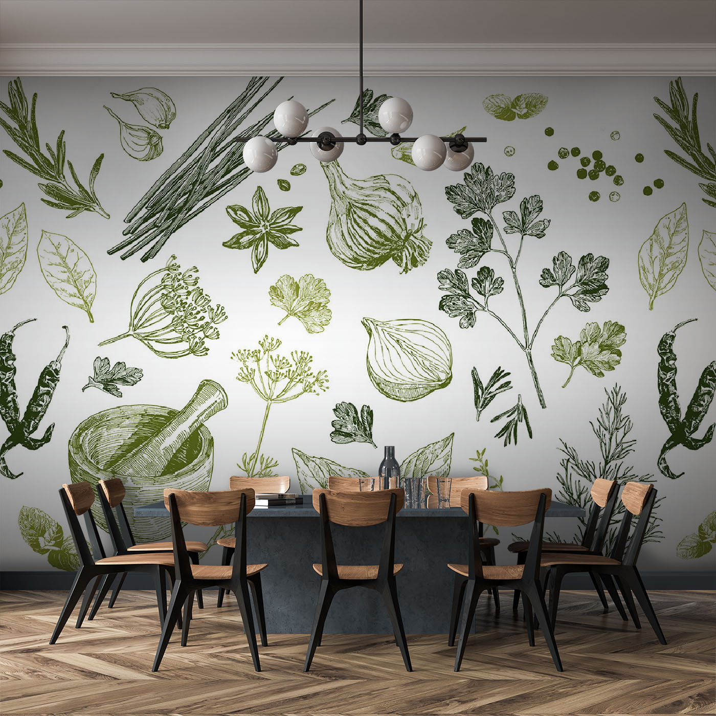 Μεταμορφώστε οποιονδήποτε μαγειρικό χώρο σε ένα αρωματικό καταφύγιο με αυτή την απολαυστική τοιχογραφία με μια ζωηρή ποικιλία βοτάνων και μπαχαρικών. Φανταστείτε ζωντανά πράσινα και γήινα χρώματα να χορεύουν στους τοίχους σας, κάνοντας κάθε γεύμα να μοιάζει λίγο πιο μαγικό. Είναι σαν να έχετε έναν μίνι κήπο μέσα στην κουζίνα σας, που σχεδόν σας βάζει σε πειρασμό να φτιάξετε λίγο πέστο ή να φτιάξετε μια φρέσκια σαλάτα. Επιπλέον, σε ποιον δεν αρέσει να ξεκινάει μια συζήτηση; Οι καλεσμένοι θα προσελκύονται και θα ρωτούν για αυτές τις μοναδικές εκτυπώσεις. Κρεμάστε το σε μια ζεστή γωνιά και παρακολουθήστε το να φέρνει ζεστασιά και έμπνευση, μετατρέποντας την ώρα του μαγειρέματος σε καθαρή χαρά. Ζεστάνετε τη διακόσμησή σας!