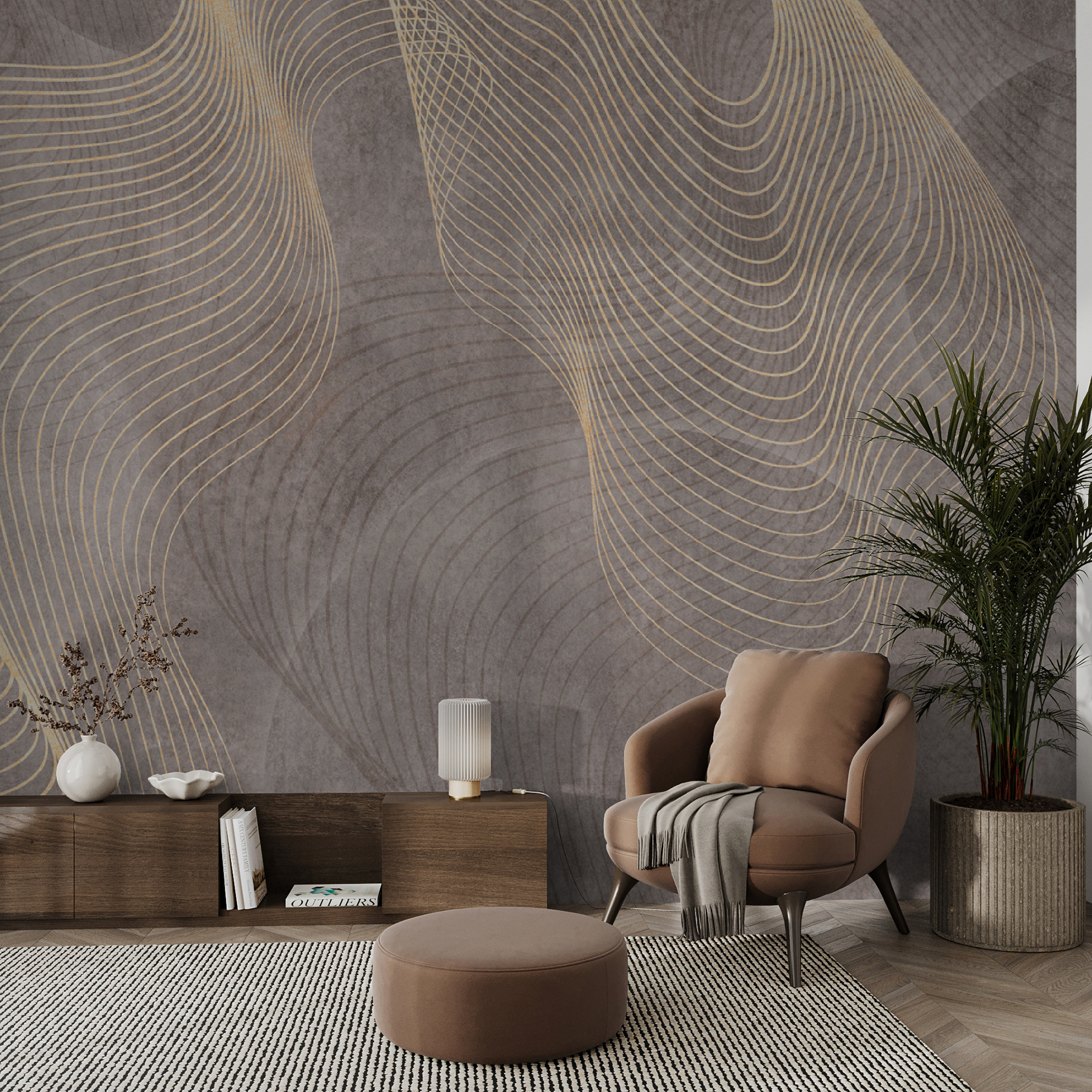 Φανταστείτε να μπαίνετε σε ένα δωμάτιο και να νιώθετε ένα κύμα ηρεμίας να σας κατακλύζει – αυτή είναι η μαγεία αυτής της τοιχογραφίας. Με κομψές καμπύλες που χορεύουν σε ένα απαλό φόντο, μεταμορφώνει αβίαστα κάθε χώρο σε ένα γαλήνιο καταφύγιο. Φανταστείτε το σε μια άνετη γωνιά ανάγνωσης ή πάνω από έναν κομψό καναπέ, προσκαλώντας αυτές τις στιγμές “αχχ” μετά από μια κουραστική μέρα. Ο λεπτός σχεδιασμός μοιάζει με απαλό αεράκι, προσφέροντας ρυθμό και γαλήνη. Δεν είναι απλώς διακόσμηση- προσθέτει μια ιστορία στους τοίχους σας, κάνοντας κάθε ματιά να μοιάζει με μια μίνι απόδραση. Αγκαλιάστε την ομορφιά της ισορροπίας – αυτή η τοιχογραφία απλά την καταλαβαίνει!