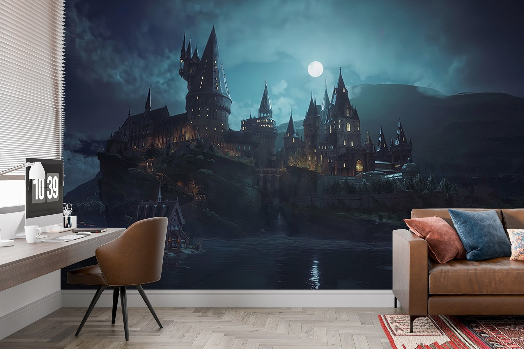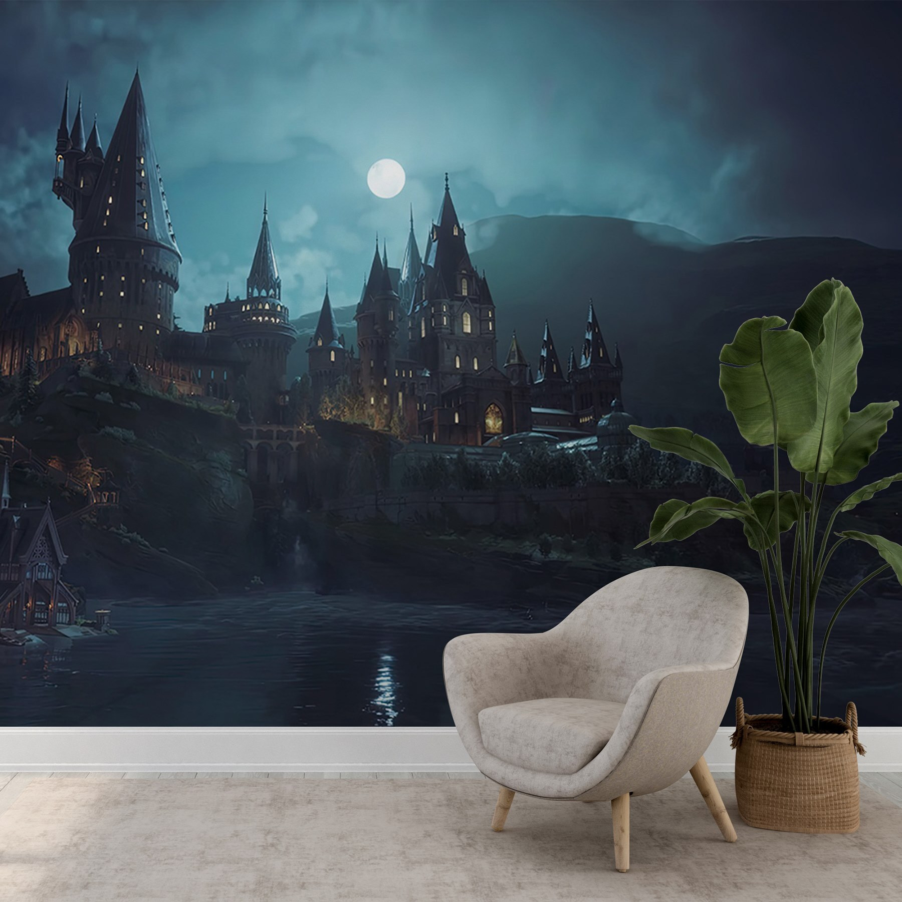Μεταμορφώστε το χώρο σας σε ένα ονειρικό καταφύγιο με αυτή τη μαγευτική τοιχογραφία τοίχου με ένα κάστρο σκαρφαλωμένο σε ένα λόφο κάτω από ένα λαμπερό φεγγάρι. Φανταστείτε ζεστά βράδια που περνάτε ατενίζοντας τους μεγαλοπρεπείς πύργους και αγκαλιάζοντας τη μαγεία της νύχτας. Είναι σαν να μπαίνετε σε ένα παραμύθι, ακριβώς στο σαλόνι σας. Τα απαλά μπλε χρώματα και οι σκοτεινές σκιές δημιουργούν μια χαλαρωτική ατμόσφαιρα, ιδανική για να χαλαρώσετε μετά από μια κουραστική μέρα. Οι φίλοι σας μπορεί ακόμη και να σας ρωτήσουν αν έχετε πάει σε άλλο βασίλειο! Αυτή η τοιχογραφία δεν είναι απλώς τέχνη- προσκαλεί σε ονειροπολήσεις και πυροδοτεί συζητήσεις, κάνοντας κάθε τοίχο ένα μαγευτικό σημείο εστίασης.