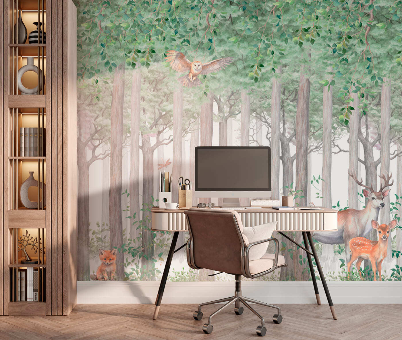 Ονειρεύεστε ένα μαγικό δάσος στο σαλόνι σας; Μην κοιτάξετε παραπέρα! Αυτή η τοιχογραφία τοίχου, με τίτλο “Ταπετσαρίες Group of animals in a forest”, είναι σαν να μπαίνετε σε ένα μαγεμένο δάσος. Φανταστείτε να ξυπνάτε μπροστά σε ευγενικά ελάφια, περίεργες αλεπούδες και μια κουκουβάγια που γλιστρά με χάρη μέσα στα δέντρα. Τα απαλά, φυσικά χρώματα θα μπορούσαν να ηρεμήσουν το χώρο και την ψυχή σας. Είναι ιδανικό για τους λάτρεις της φύσης, προσθέτοντας μια πινελιά άγριας φύσης χωρίς να χρειάζεται πραγματική άγρια ζωή. Και ε, υπάρχει ακόμη και ένα vintage ποδήλατο κρυμμένο ανάμεσα στα δέντρα – πόσο γοητευτικό είναι αυτό; Μεταμορφώστε οποιοδήποτε δωμάτιο στο δικό σας μικρό δασικό καταφύγιο.