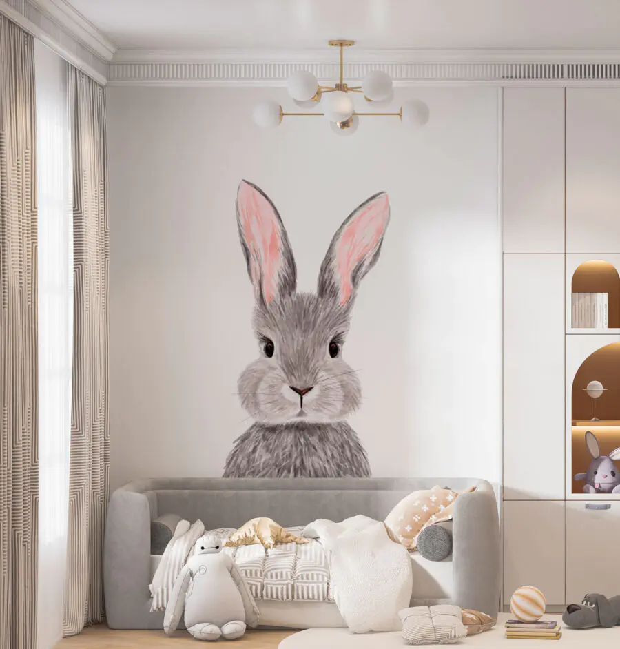 Η απλότητα του σχεδιασμού του επιτρέπει να συνδυάζεται με διάφορες διακοσμήσεις, αλλά εξακολουθεί να ξεχωρίζει ως το αστέρι του δωματίου. Είναι εκπληκτικό πώς μια μικρή βουτιά λαγουδάκι μπορεί να μετατρέψει έναν καθημερινό τοίχο σε κάτι μαγικό, σωστά; Έτσι, αν είστε έτοιμοι για μια δόση μαγείας και μια πρέζα αξιολάτρευτου, αυτή η τοιχογραφία είναι η επιλογή σας. Είναι κάτι περισσότερο από διακόσμηση – είναι ένα χαμόγελο που περιμένει να συμβεί κάθε μέρα.