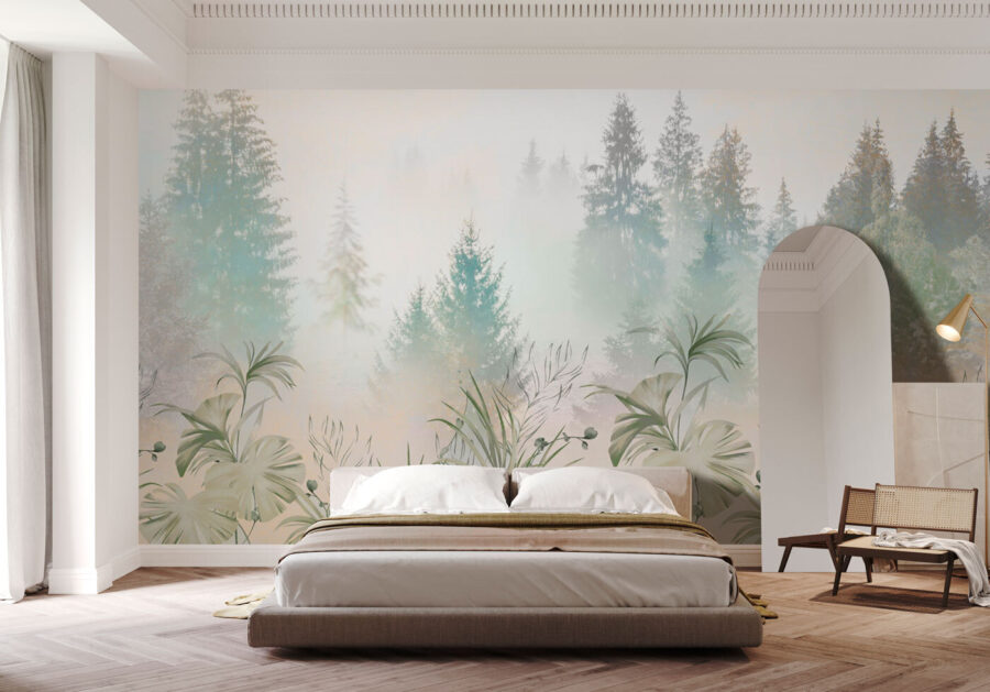 Φανταστείτε να ξυπνάτε κάθε μέρα με τη γαλήνια ατμόσφαιρα ενός ομιχλώδους δάσους, ακριβώς στο σαλόνι σας. Αυτό σας προσφέρει αυτή η τοιχογραφία “Ομίχλη Δάσους με πλούσια βλάστηση”. Είναι σαν να έχετε ένα κομμάτι ηρεμίας και φύσης στον τοίχο σας χωρίς να βγαίνετε από την άνεση του σπιτιού σας. Τα απαλά πράσινα και η απαλή ομίχλη δημιουργούν ένα ηρεμιστικό αποτέλεσμα που είναι ιδανικό για κάθε χώρο που αναζητά ένα άγγιγμα φύσης.