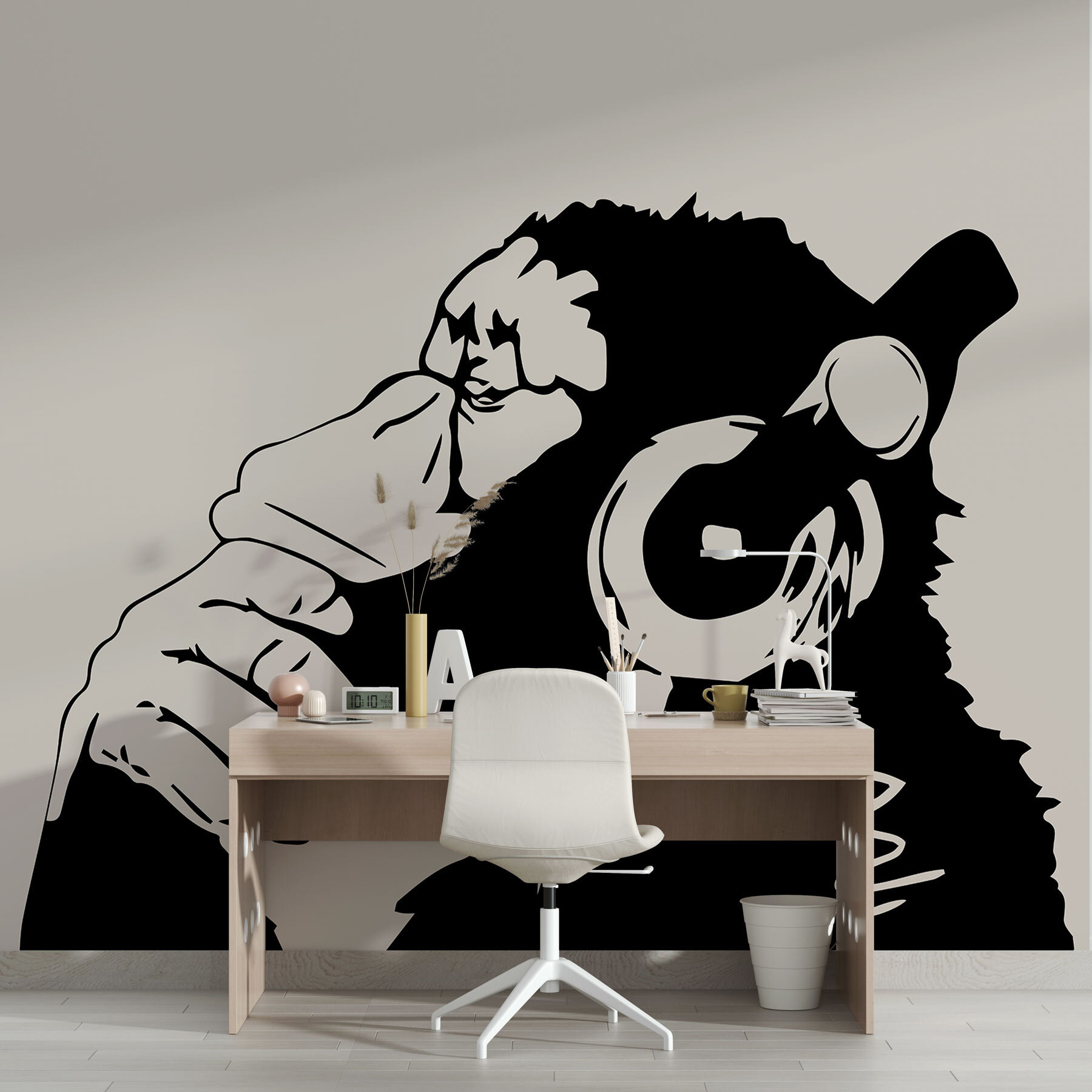 Έχετε έναν βαρετό τοίχο που χρειάζεται λίγη προσωπικότητα; Δώστε του ζωή με αυτή την τοιχογραφία τοίχου “Monkey wearing headphones”! Ιδανική για να προσθέσετε μια πινελιά διασκέδασης σε οποιοδήποτε δωμάτιο, είτε πρόκειται για παιδικό υπνοδωμάτιο, είτε για παιδικό δωμάτιο, είτε ακόμη και για το γραφείο σας στο σπίτι, αν αισθάνεστε περιπετειώδης. Αυτή η θρασύτατη μαϊμού απλά το καταλαβαίνει – μερικές φορές πρέπει να βάλεις δυνατά τους ήχους και να χαθείς στον δικό σου κόσμο. Είναι ιδιόμορφο, σύγχρονο και θα κάνει τον καθένα να χαμογελάσει. Ξέρετε αυτό το συναίσθημα όταν η μουσική είναι ακριβώς η σωστή και όλα τα άλλα ξεθωριάζουν; Ναι, αυτή η μαϊμού το καταλαβαίνει. Οι τοίχοι σας θα σας ευχαριστήσουν!