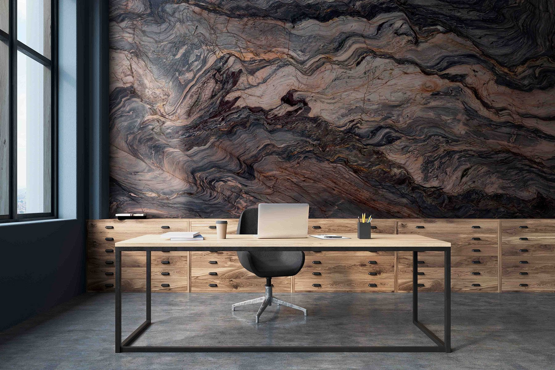 Μεταμορφώστε το χώρο σας με την τοιχογραφία “Swirling Patterns of Natural Beauty”. Αυτό το εκπληκτικό έργο αποτυπώνει την ουσία των πλούσιων υφών και χρωμάτων του μαρμάρου, που στροβιλίζονται μεταξύ τους σαν ένας απαλός χορός. Φανταστείτε να μπαίνετε σε ένα δωμάτιο και να αισθάνεστε αμέσως τυλιγμένοι σε μια αγκαλιά ζεστασιάς και κομψότητας. Είναι σαν να έχετε ένα κομμάτι της φύσης στον τοίχο σας, δημιουργώντας μια φιλόξενη ατμόσφαιρα που πυροδοτεί χαρά.
