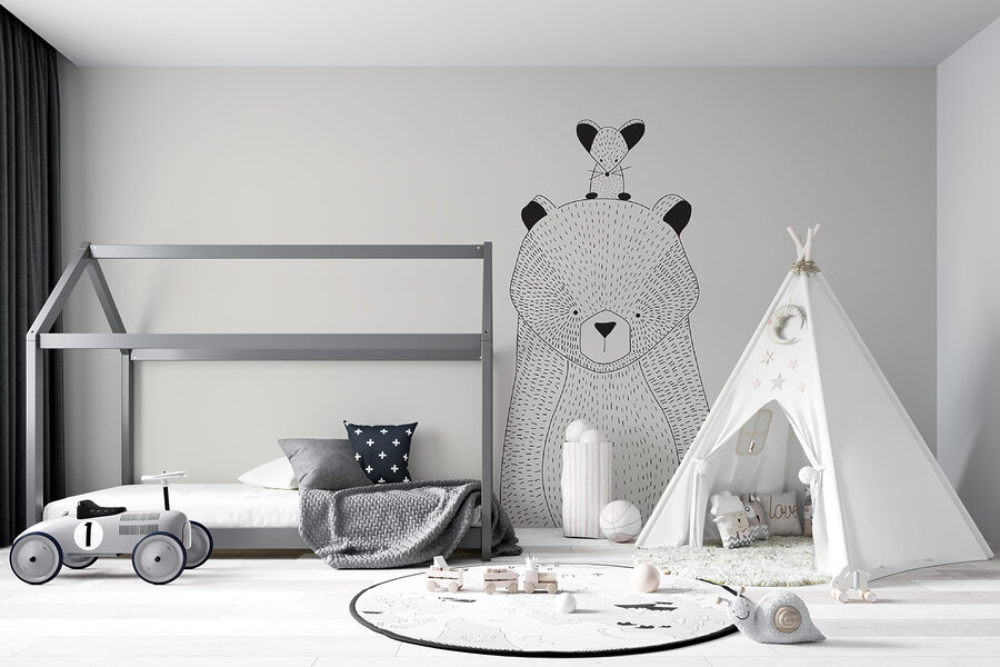 Δείτε αυτή τη γοητευτική τοιχογραφία ενός ιδιόρρυθμου αρκούδου – ιδανική για να δώσετε μια πινελιά άνετης, παιχνιδιάρικης ατμόσφαιρας στο δωμάτιο κάθε παιδιού! Φανταστείτε τα απολαυστικά χαχανητά όταν το μικρό σας εντοπίσει αυτό το φιλικό αρκουδάκι πρωί-πρωί. Είναι σαν να έχετε έναν φίλο του δάσους ακριβώς εκεί, στο παιδικό δωμάτιο ή στο δωμάτιο παιχνιδιού σας.