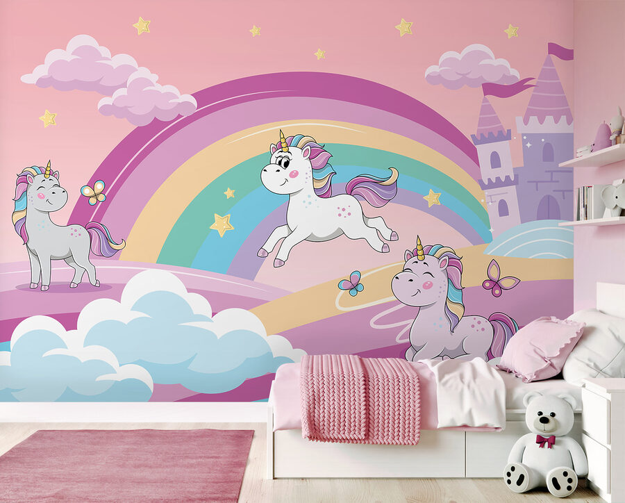 Μεταμορφώστε κάθε συνηθισμένο δωμάτιο σε μια ιδιόρρυθμη απόδραση με αυτή την αξιολάτρευτη τοιχογραφία μονόκερου! Φανταστείτε πεταλούδες να χορεύουν γύρω από πολύχρωμα ουράνια τόξα, ενώ παιχνιδιάρικοι μονόκεροι χοροπηδούν κάτω από έναν απαλό ροζ ουρανό. Είναι σαν να μπαίνετε σε ένα παραμύθι, όπου η μαγεία είναι μόνο ένα χτύπημα της καρδιάς σας μακριά. Ιδανική για να εξάψει τη φαντασία του μικρού σας, αυτή η τοιχογραφία δίνει μια ζεστή, διασκεδαστική αίσθηση, κάνοντας κάθε μέρα να μοιάζει με περιπέτεια. Είναι βέβαιο ότι θα φέρει χαμόγελα και γέλια, καθώς και μια δόση χαράς κάθε φορά που θα μπαίνουν μέσα. Ποιος δεν θα ήθελε λίγη παραμυθένια μαγεία στους τοίχους του;