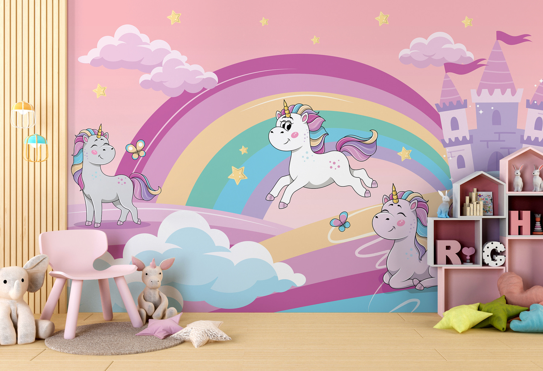 Μεταμορφώστε κάθε συνηθισμένο δωμάτιο σε μια ιδιόρρυθμη απόδραση με αυτή την αξιολάτρευτη τοιχογραφία μονόκερου! Φανταστείτε πεταλούδες να χορεύουν γύρω από πολύχρωμα ουράνια τόξα, ενώ παιχνιδιάρικοι μονόκεροι χοροπηδούν κάτω από έναν απαλό ροζ ουρανό. Είναι σαν να μπαίνετε σε ένα παραμύθι, όπου η μαγεία είναι μόνο ένα χτύπημα της καρδιάς σας μακριά. Ιδανική για να εξάψει τη φαντασία του μικρού σας, αυτή η τοιχογραφία δίνει μια ζεστή, διασκεδαστική αίσθηση, κάνοντας κάθε μέρα να μοιάζει με περιπέτεια. Είναι βέβαιο ότι θα φέρει χαμόγελα και γέλια, καθώς και μια δόση χαράς κάθε φορά που θα μπαίνουν μέσα. Ποιος δεν θα ήθελε λίγη παραμυθένια μαγεία στους τοίχους του;