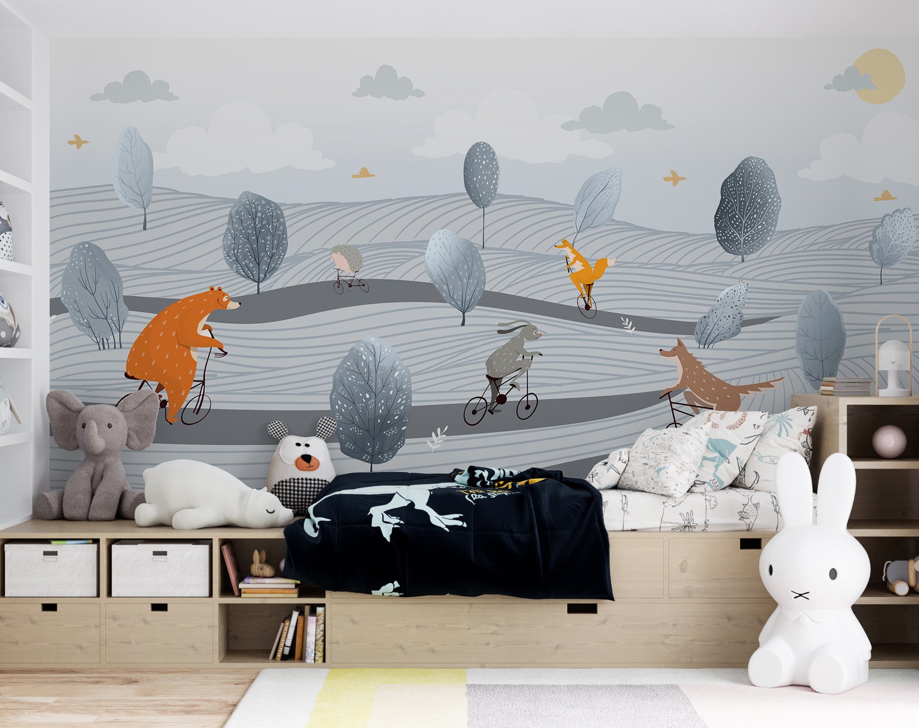Μεταμορφώστε οποιονδήποτε χώρο με αυτή την ιδιόρρυθμη τοιχογραφία με μια παρέλαση γοητευτικών ζώων που οδηγούν ποδήλατα! Φανταστείτε μια αρκούδα, μια αλεπού και έναν σκαντζόχοιρο να διασχίζουν ένα ονειρικό τοπίο. Είναι σαν μια σκηνή από ένα απολαυστικό παιδικό παραμύθι, ιδανικό για να προκαλέσει χαμόγελα και να εμπνεύσει τη φαντασία. Είτε πρόκειται για ένα παιδικό δωμάτιο, ένα παιδικό δωμάτιο ή απλώς για μια διασκεδαστική ανανέωση του χώρου σας, αυτή η τοιχογραφία προσθέτει μια παιχνιδιάρικη πινελιά που ανεβάζει τη διάθεση. Σκεφτείτε το ως έναν φιλικό σύντροφο στους τοίχους σας, προσκαλώντας όλους να μπουν σε αυτή τη χαρούμενη περιπέτεια. Ποιος δεν θα ήθελε μια δόση χιούμορ και ιδιοτροπίας στην καθημερινή του ζωή;