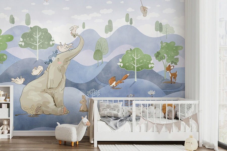 Φανταστείτε να μεταμορφώσετε το δωμάτιο ενός παιδιού σε μια αλλόκοτη χώρα των θαυμάτων με αυτή την παιχνιδιάρικη τοιχογραφία. Με ένα αξιολάτρευτο κουνέλι που κρατάει ένα λουλούδι, το οποίο πλαισιώνεται από ένα χαρούμενο καστ από ζωάκια όπως ένας ελέφαντας, μια αλεπού και ένα ελάφι, είναι βγαλμένο από παραμύθι. Τα παστέλ χρώματα και το ονειρικό τοπίο φέρνουν μια αίσθηση ηρεμίας και χαράς – τέλεια για να κεντρίσουν τη φαντασία των μικρών. Φανταστείτε παραμύθια που ζωντανεύουν ή τεμπέλικα απογεύματα που χάνονται σε ονειροπολήσεις. Αφήστε αυτή την τοιχογραφία να φωτίσει κάθε χώρο, δημιουργώντας ένα μαγικό καταφύγιο όπου συνυπάρχουν η περιπέτεια και η γαλήνη.