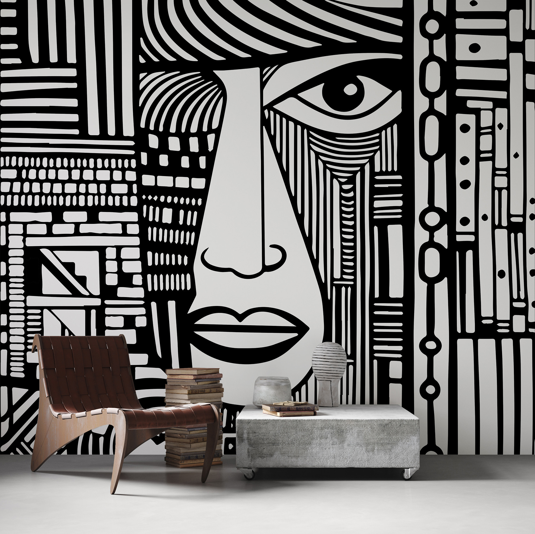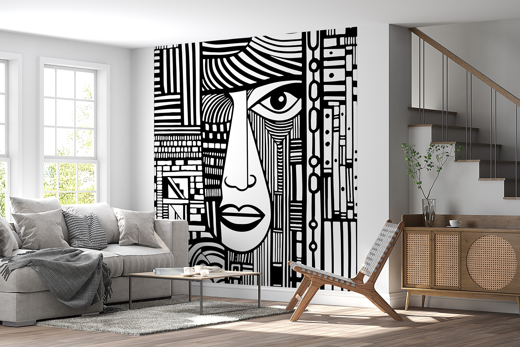 Θέλατε ποτέ τέχνη που να σας αρπάζει από τους ώμους και να σας κάνει να προσέξετε; Τότε αυτή η τοιχογραφία “Ασπρόμαυρο σχέδιο ενός προσώπου” είναι για εσάς. Είναι ιδανική για όσους λατρεύουν τις σχεδιαστικές ταπετσαρίες, αλλά και επιθυμούν κάτι λίγο… τολμηρό. Οι τολμηρές γραμμές και οι εντυπωσιακές αντιθέσεις σας τραβούν προς τα μέσα – είναι σχεδόν σαν το πρόσωπο να έχει μια βαθιά συνομιλία μαζί σας. Φανταστείτε να μπαίνετε στο δωμάτιό σας μετά από μια κουραστική μέρα και να αισθάνεστε αμέσως λίγο πιο εκλεπτυσμένοι, σαν να έχετε μπει σε μια σύγχρονη γκαλερί τέχνης. Αυτή η τοιχογραφία προσθέτει περιέργεια και μια δόση μυστηρίου σε κάθε χώρο. Επιπλέον, είναι απλά δροσερό, σωστά;
